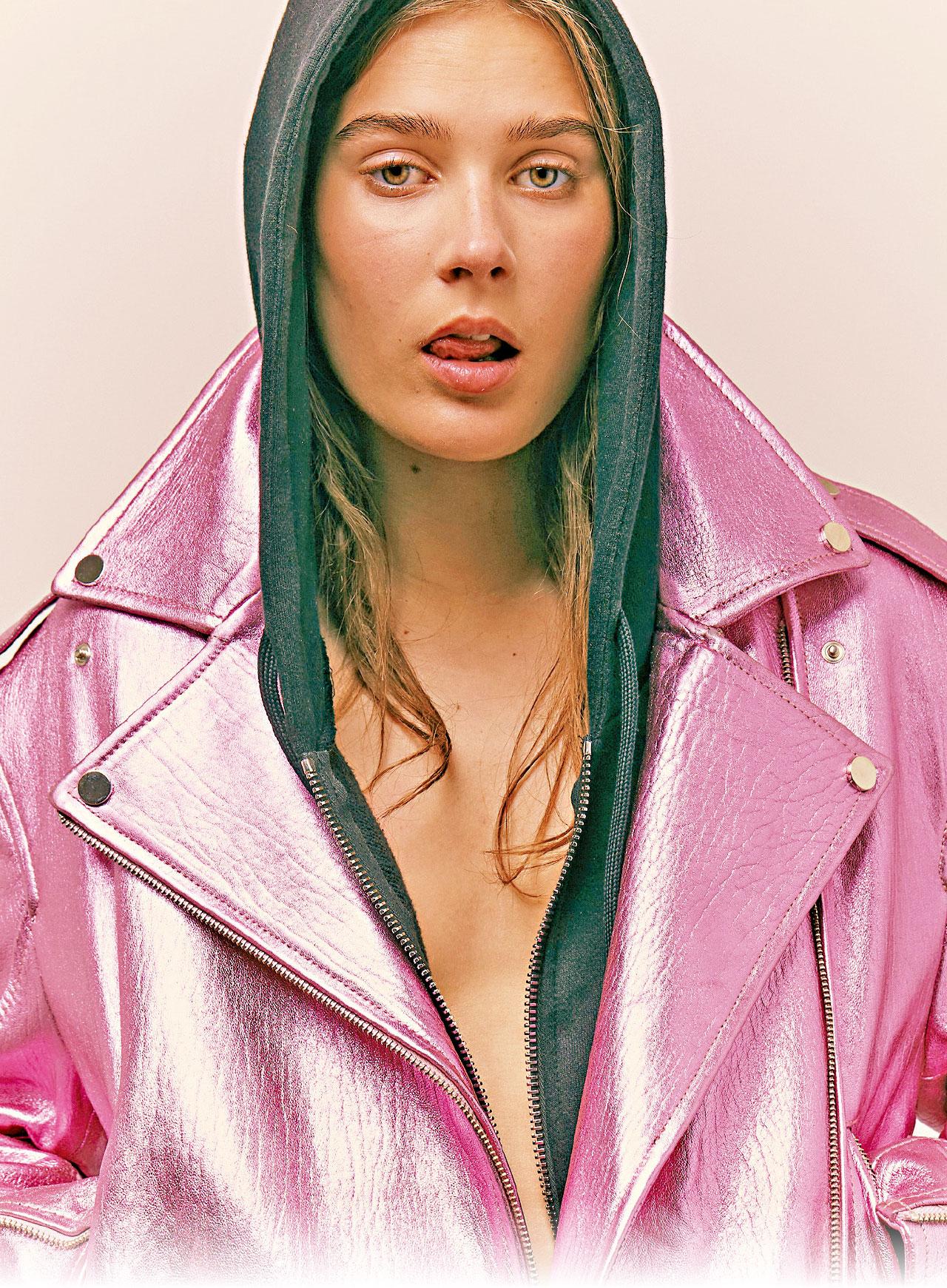 Metallic pink的biker jacket,給粉紅色帶來型酷風采!(未定價,FILLES A PAPA)