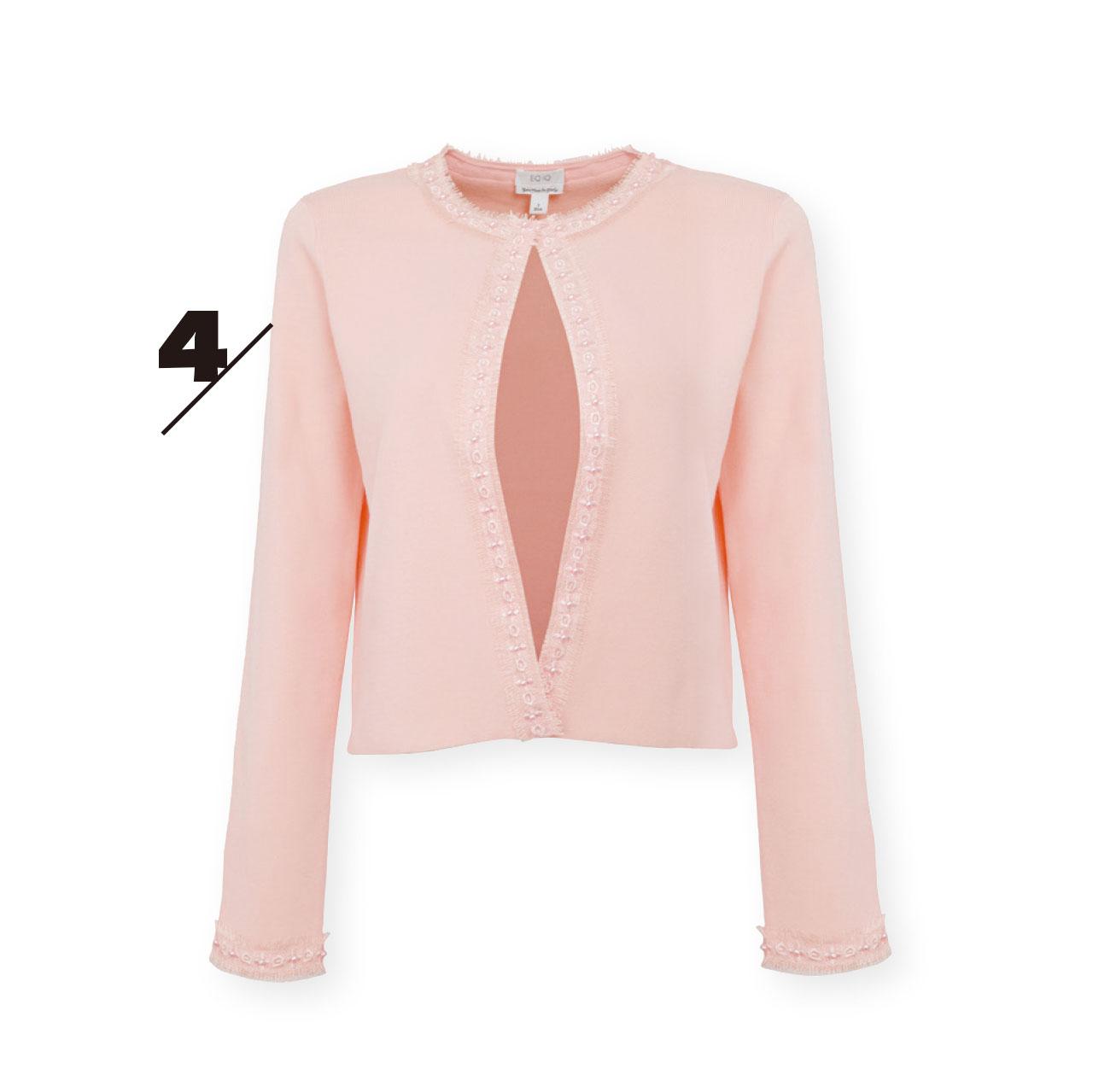 4. 粉紅色淨色外套,在袖口和鈕邊開胸位綴以同色喱士,讓粉紅色變得含蓄高貴。($3,200,EQ:IQ)