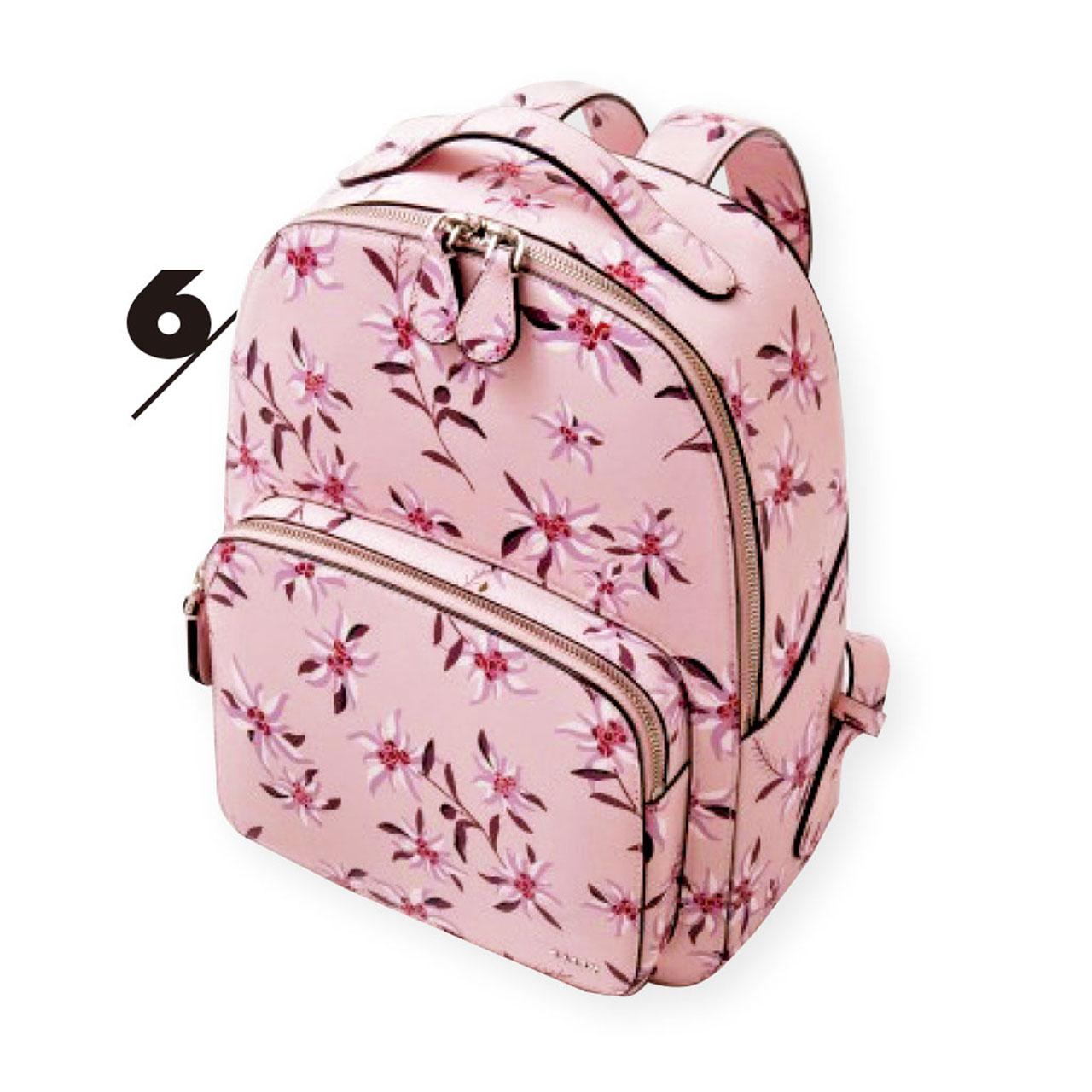 6. 淡粉紅色花花圖案背囊,在都會中的你一樣可以散發田園少女的味道。($7,390,Bally)