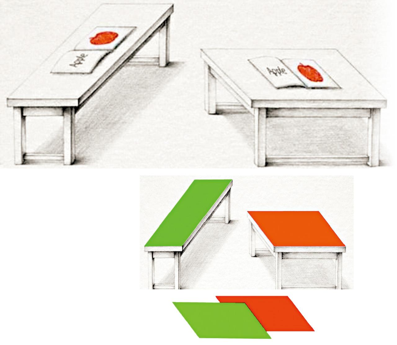 返回 生活 出版:2017-May-17 06:00 更新:2017-May-17 06:00 枱面邊張大? 分享: 看似不同形狀的兩張桌子(大圖),肉眼評估枱面孰大孰細有點難度。原來枱面形狀面積完全一樣,有圖未必有真相!紐約大學研究員解釋:我們生活在立體空間,慣以3D概念去理解2D圖片;加上刻意以枱面物件和枱腳混淆視覺深度,便出現一長一方的幻覺。(互聯網) ADVERTISEMENT激送Monchhichi維港海陸嘉年華入場券!