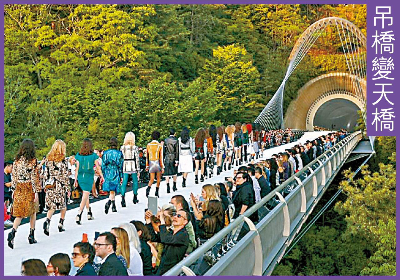 名牌開騷不但先聲奪人,更以銀彈撻人。Louis Vuitton本周移師日本展出秋冬系列,地點是翠綠山林、場館是著名美秀美術館、天橋是深山吊橋!加上招待貴賓從巴黎總部飛到9,628公里外的滋賀縣,估計起碼燒掉5,000萬港元。