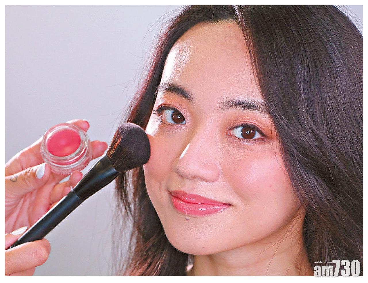 Step 3 在蘋果肌位置掃上空氣柔霧胭脂霜,柔滑慕絲質地易於暈開,化成天鵝絨般細密粉末,輕柔貼合肌膚,打造柔和胭脂妝效。