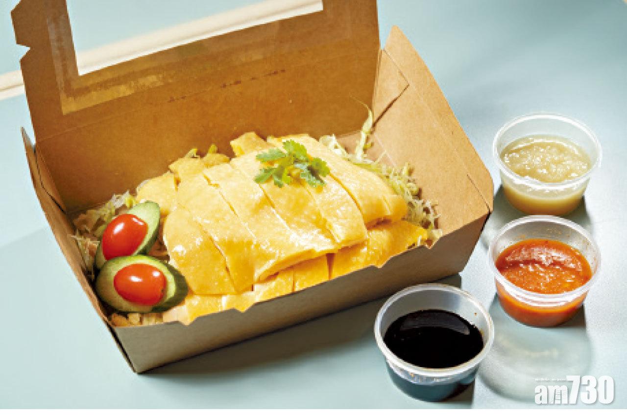 新加坡文華酒店Chatterbox必食的文華海南雞飯,限時外賣自取優惠價$138半隻或$238原隻,同樣提供「鐵三角」秘製辣椒醬、黑醬油和薑蓉。