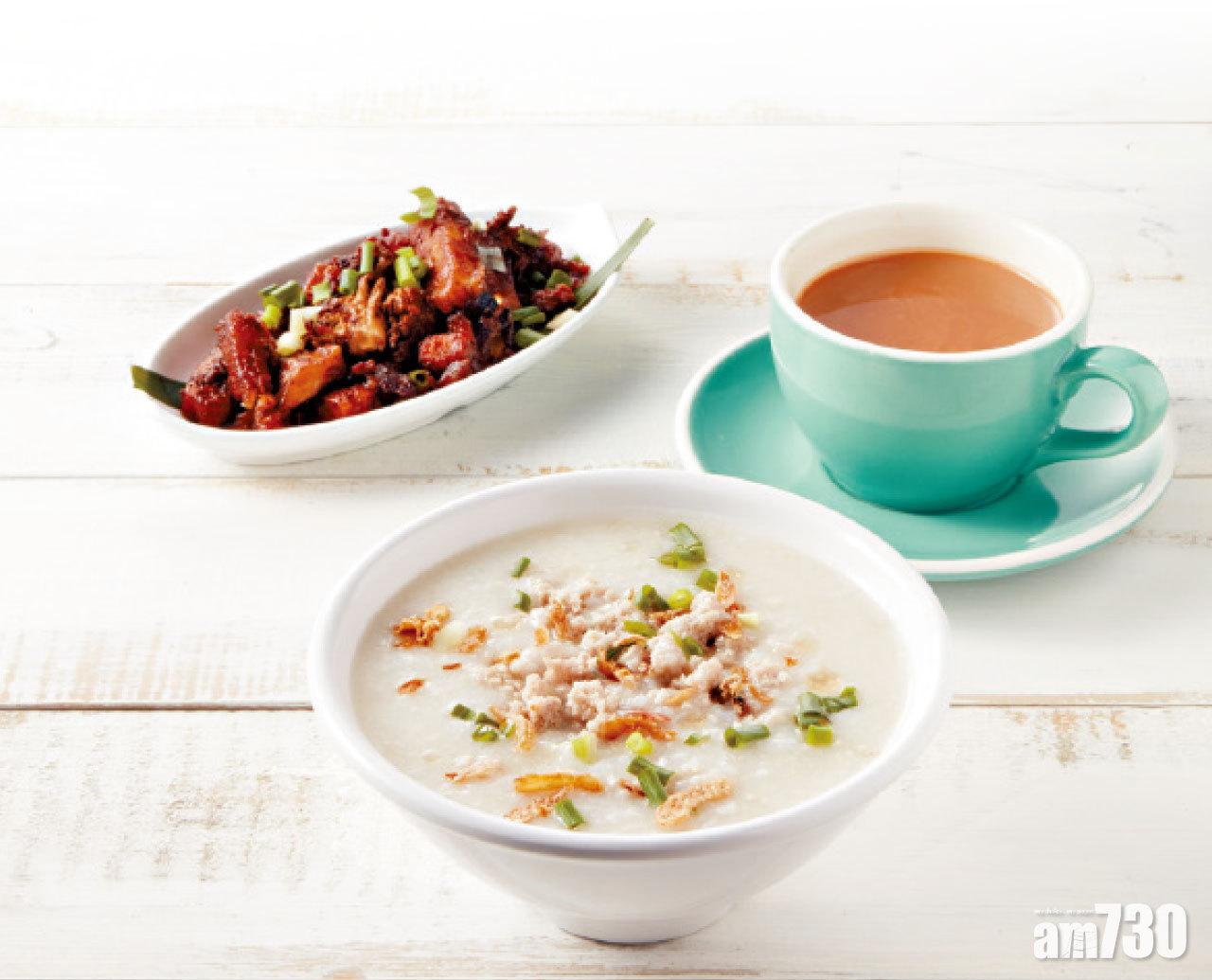 快將推出的早餐粥品及常餐,小食配搭有新加坡美食中常見的半熟蛋及黑醬油炒蘿蔔糕等。