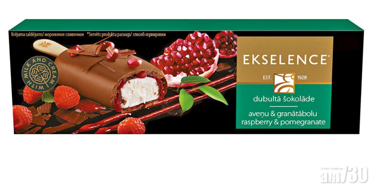 紅莓石榴雪糕批,朱古力脆皮外層包裹着紅莓石榴酸甜夾心,淡淡莓香味加上石榴獨有甘香,襯托醇厚牛奶味,甜而不膩,層次豐富。$38/85g