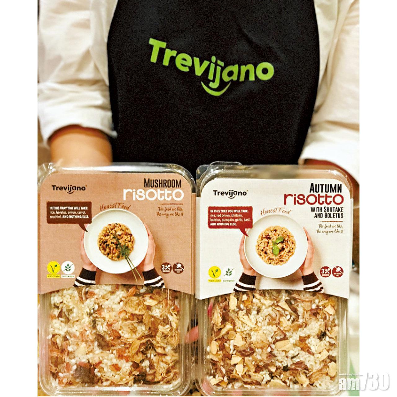 ■西班牙Trevijano脫水即食飯,分意大利飯(risotto)、西班牙大鍋飯(Paella)、古斯米(cous cous)及湯類,一盒已包括米飯及材料,每次按需要分量按比例加水及油烹調(一盒3至4人享用)即可,餘下可用密封容器保存。最受歡迎為牛肝菌意大利飯,另有新增特濃牛肝菌及羅勒番茄兩款口味。$100/2盒,憑優惠券買滿$300再即減$30及環保袋。攤位:尊貴美食區3C-E13