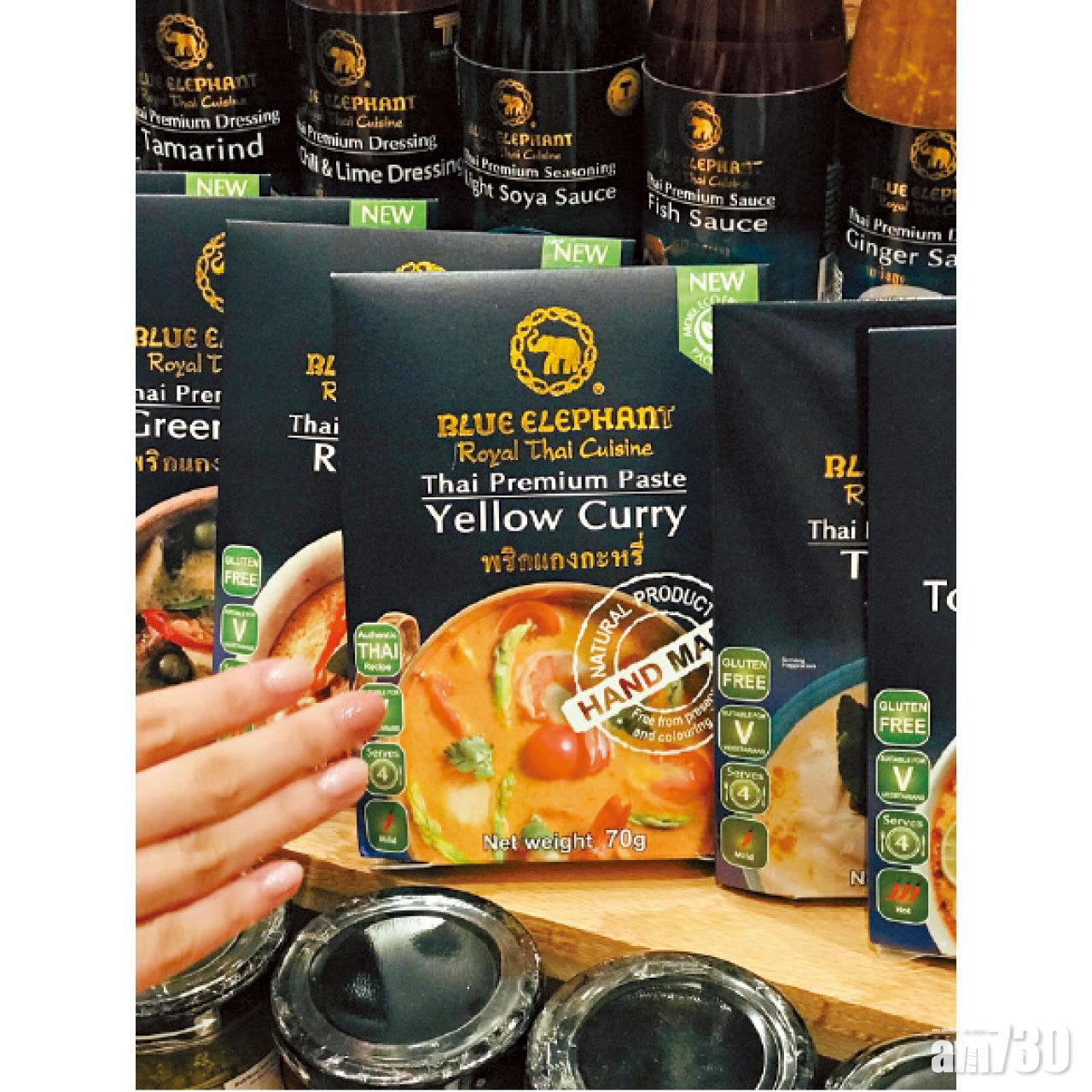 ■泰國米芝蓮餐廳藍象8款經典味道即煮咖喱包,全新配方不含魚露、少鹽及不含麩質,素食人士適用,當中最受歡迎為黃咖喱。攤位:1D-B21