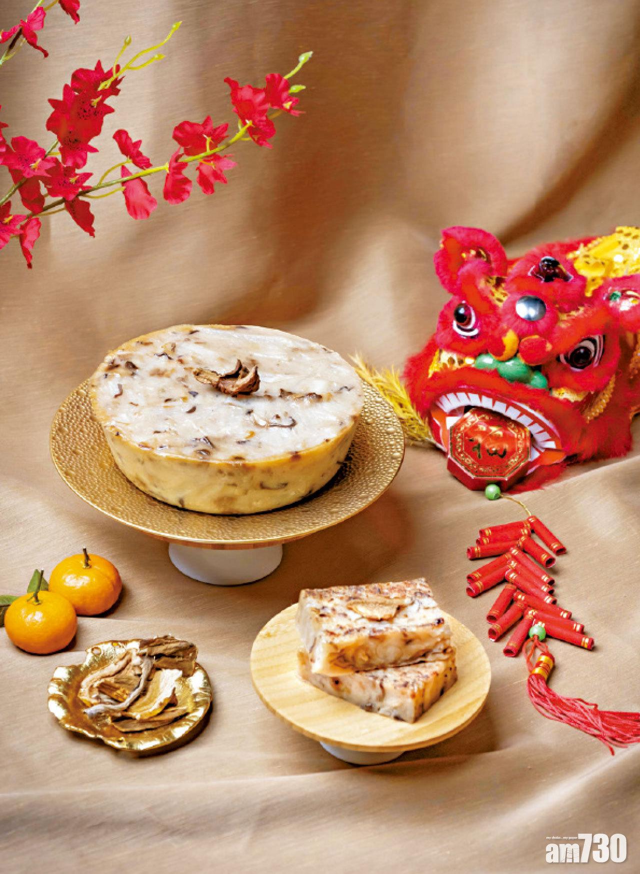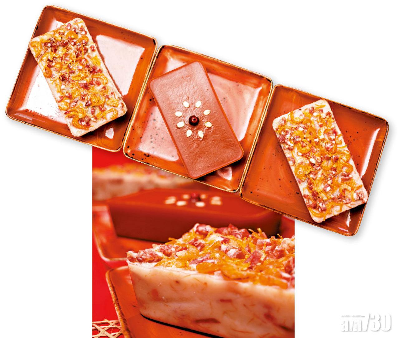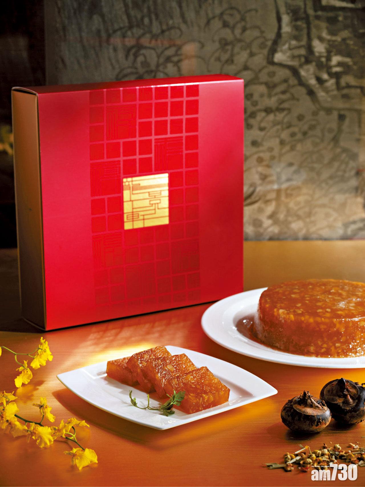 天外天中菜廳行政總廚黃子其師傅精心炮製出3款自家製賀年糕點,包括雲腿臘味蘿蔔糕($298)、瑤柱臘味芋頭糕($298)及迎春金糖年糕($298),足料味美,寓意新一年步步高陞;另有自選年糕禮盒($430),自選一款糕點配自家製X.O.醬乙瓶(原價$238)或琥珀合桃(原價$198)乙包。