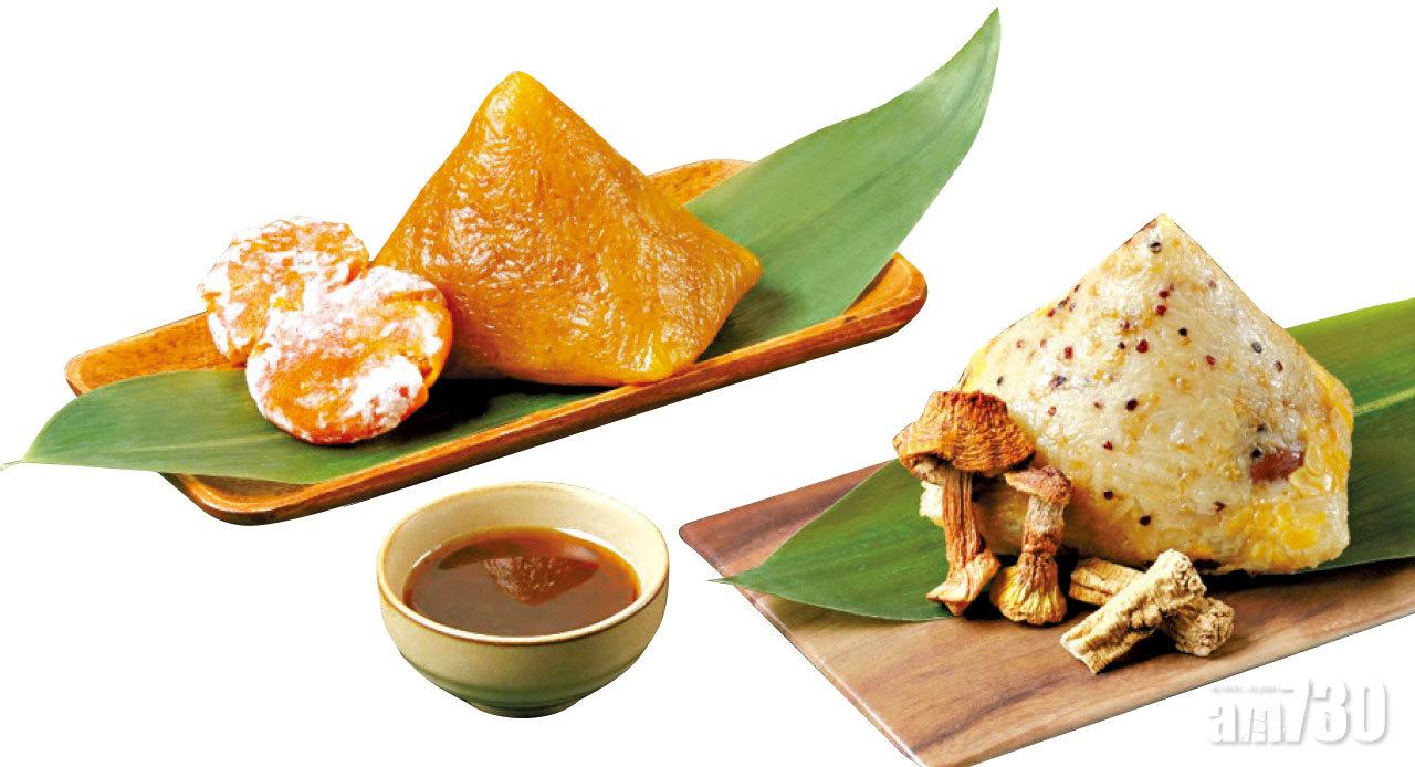 粵菜老字號翠亨邨今年首推素食養生姬松茸益氣糭,及獨創黃金柑桔糭組合成養生孖寶,適合追求健康及素食人士。姬松茸益氣糭選用高纖三色藜麥混入糯米製作,特別加入姬松茸以及健肺補氣的黨參及淮山;原創黃金柑桔糭,將糖柑桔及自家製柑桔茸以秘方炮製色澤金黃晶瑩的鹼水糭,可蘸上配製的蜜味柑桔醬食用,散發淡淡果香。每隻糭子真空獨立包裝,連真空袋於沸水中翻熱後即可享用,方便衛生。