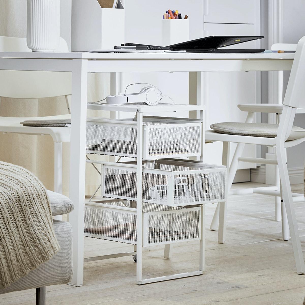 香港家庭未必個個有書房,不過可以利用屏風分隔出獨立空間,EILIF 獨立屏風有效減低燥音,與另一半同時工作,或小孩在同一空間學習也更容易不被打擾。另外,整潔的書桌與文件收納品同樣是工作好幫手,新推的ALEX/MÅLVAKT 書檯空間充裕,且備有多抽屜設計;而另一款TROTTEN升降式書檯,書檯高度可調校至70至120厘米,無論是坐著或站著工作,都可找到最佳位置。
