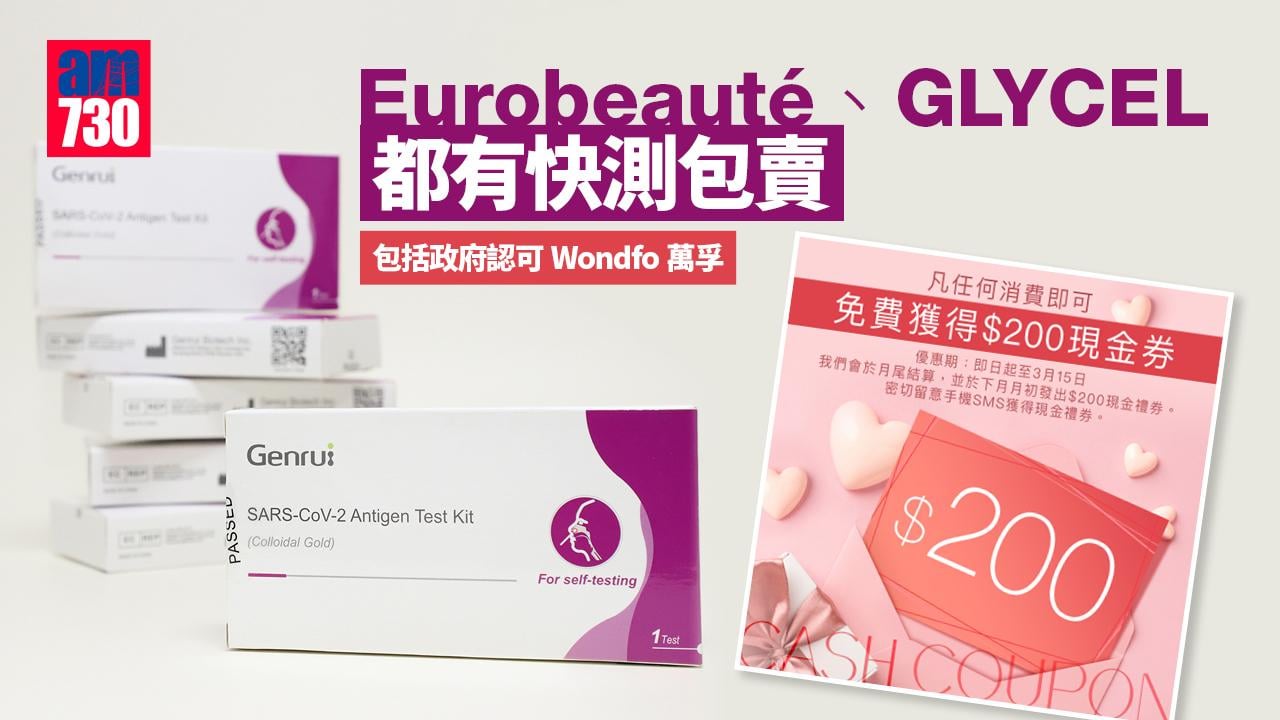 Omicron確診人數今日最創新高,達5.5萬。目前市面不少快測包都賣斷市,本身從事家用美療產品的美容品牌Eurobeauté及Glycel,都在疫情下購入了兩款快速測試包,包括世衛及歐盟認證的「Genrui」,以及政府認可的「Wondfo萬孚」,價錢均為$35,希望在疫情下,市民無需徬徨周圍搵,亦不用捱貴貨。目前在相關網站購物滿$500即可享免運費優惠,任何消費亦有$200現金券。在Eurobeauté網站購物滿指定金額,更會送出眼膜及面膜等。