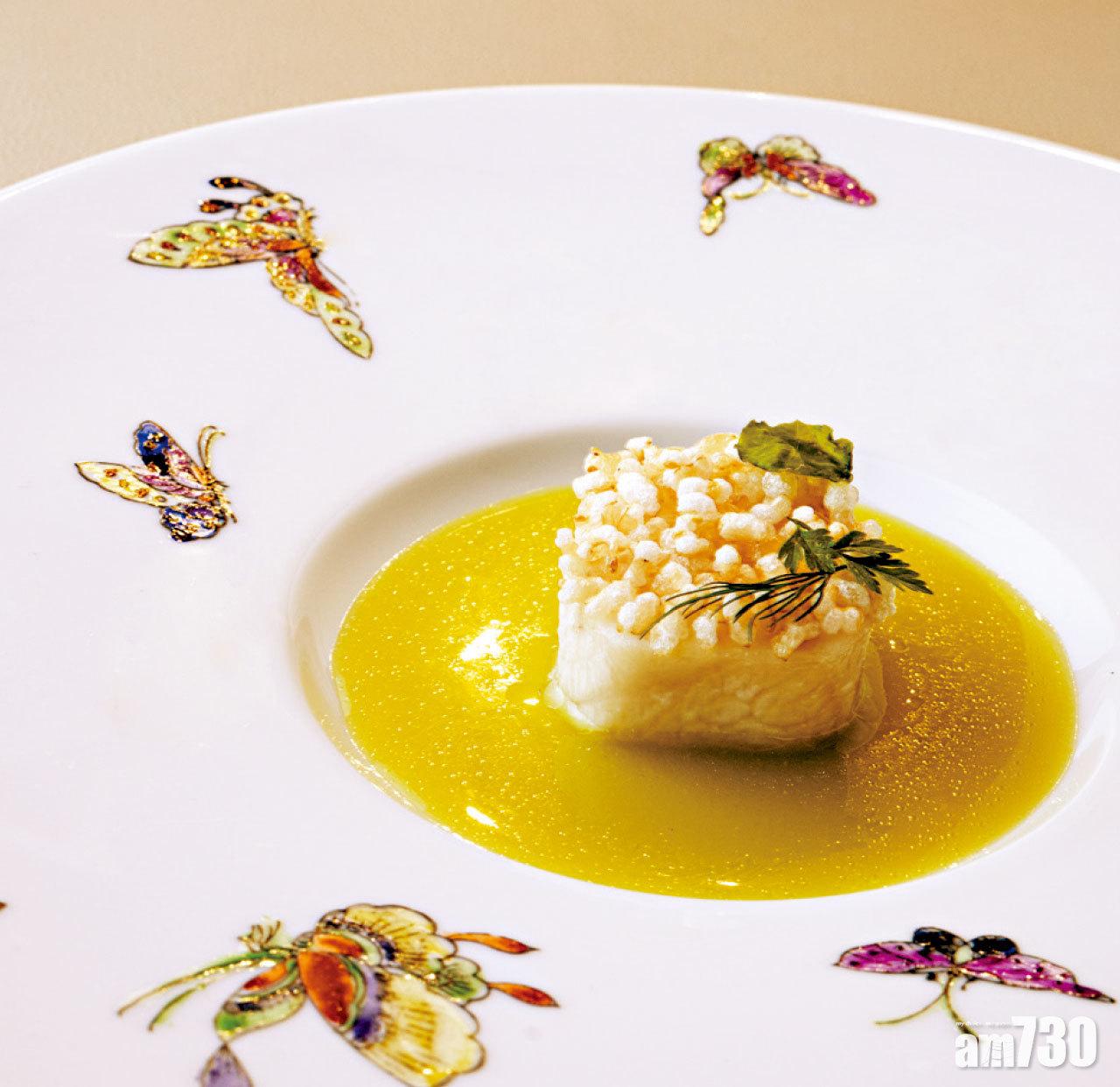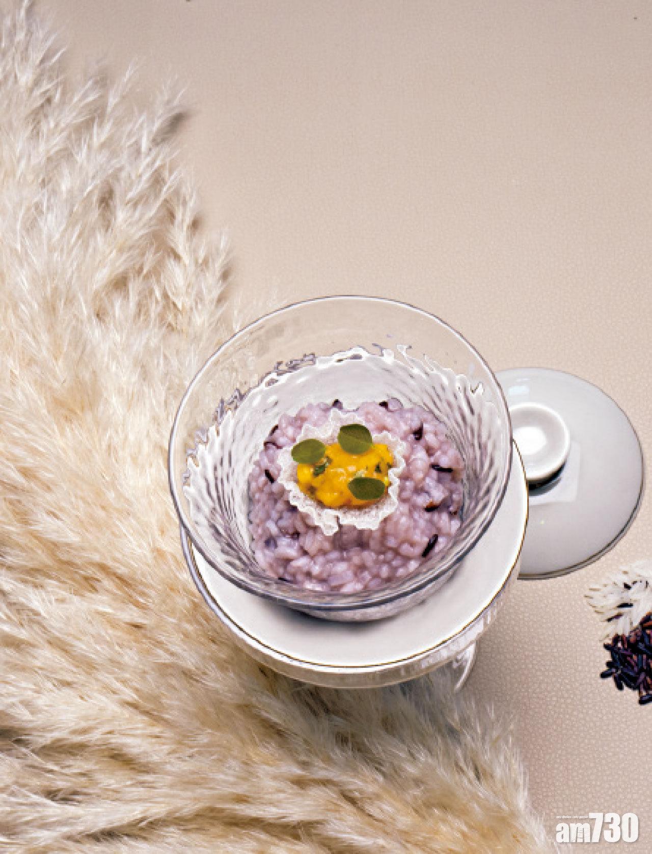 先來一客凍粥配帶子生蠔,粥底由泰國茉莉香米及黑米煮成,另有黑龍江米叉燒煎蛋飯、薰衣草鴿子配茴香荷葉飯及烤糙米雪糕配酒粕梳乎厘等,另可選配由侍酒師Francois Ferrand精心配搭的葡萄酒。$780(另設加一服務費)