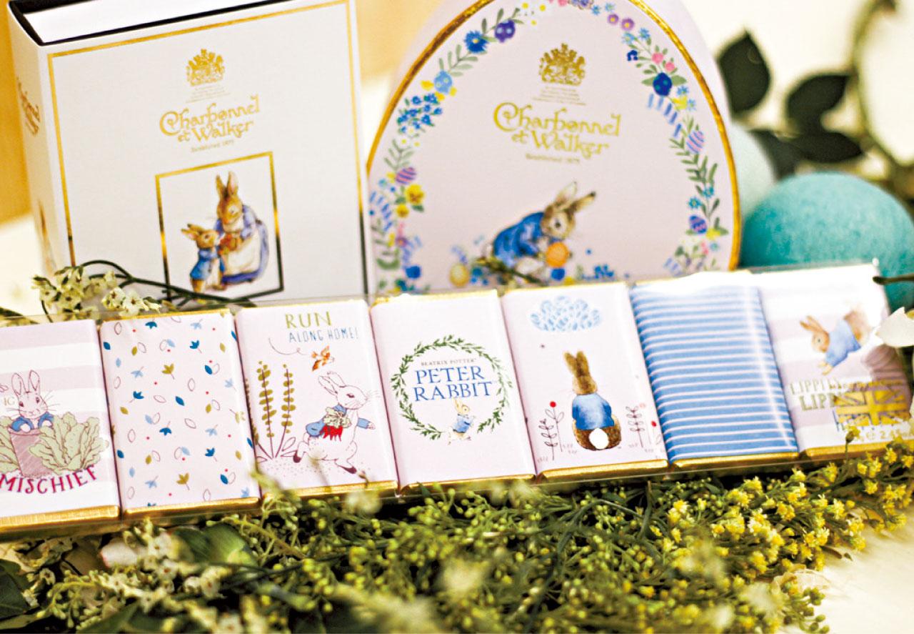 充滿童趣的Charbonnel et Walker限量版彼得兔朱古力系列,除復活蛋造型禮盒,當中以童話書禮盒向Beatrix Potter所創作的兒童繪本致敬最吸睛。另備有迷你朱古力bar,款款圖案也不同,花多眼亂必定吸引到小朋友目光!而另一款經典牛奶海鹽焦糖松露朱古力蛋,粉黃色蛋型禮盒可愛又華麗,一打開可見一顆顆小巧蛋型朱古力,香甜外殼與帶鹹味的海鹽焦糖夾心在味蕾上互相交織,讓人一試難忘;像雪花散落在外殼的糖粉更為朱古力多添幾分甜蜜的氣息。