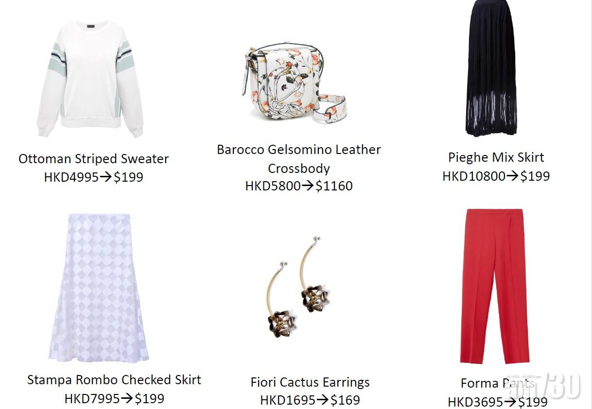 優惠:全場貨品低至1折;部份精選單品心動價$99起,數量有限,售完即止。