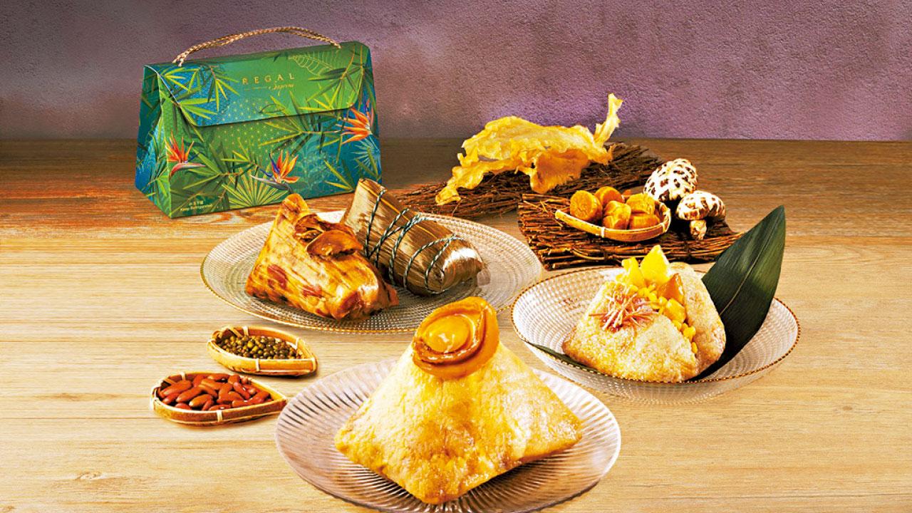 富豪酒店特別設計四款至尊名粽禮盒,包括全新尊養生牛肝菌五色豆素粽,以燉湯為靈感的至尊花膠螺頭金腿瑤柱粽及足料至尊原隻鮑魚瑤柱火腿粽等。由即日起至6月2日富豪酒店網上商店發售。