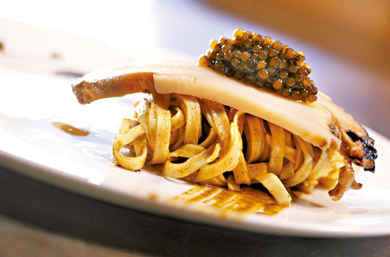 而魚翅為賦予更多日式味道,先用日本昆布水餵過魚翅再煎香,再配日本赤雞濃湯泡沫,點睛位是下了少許白松露油做的Caviar帶出另一層香味,完全體現無國界料理的感覺。另外,肝醬鮑魚麵會配老舖的蝦子麵,而鮑魚則以日式蒸的方式製作。而大家更關心以壽司為主食的部分,壽司主廚也是廿年日菜經驗,用兵庫縣米、赤醋及高丸山紫菜等,魚料也會經不同江戶前做法處理。