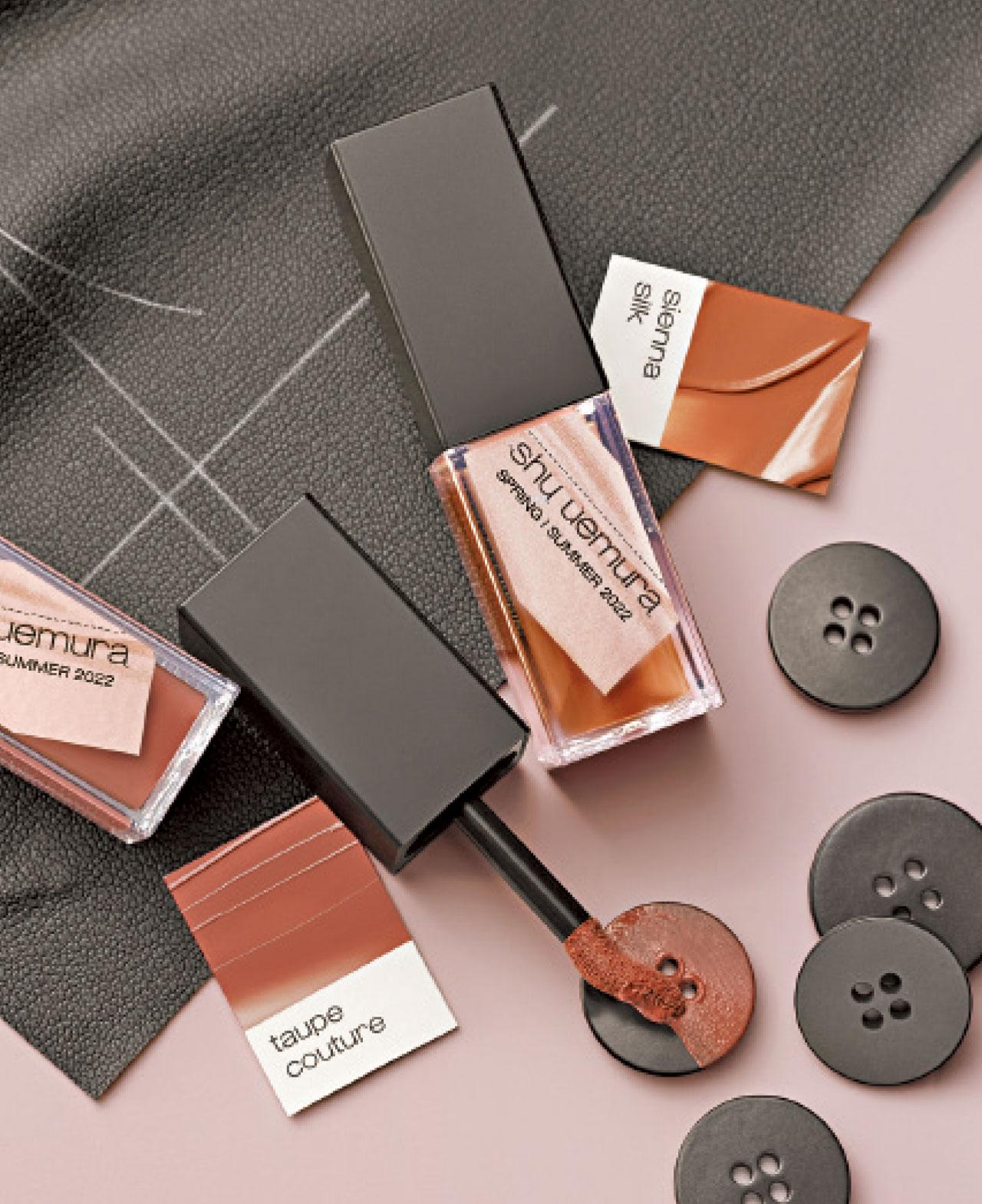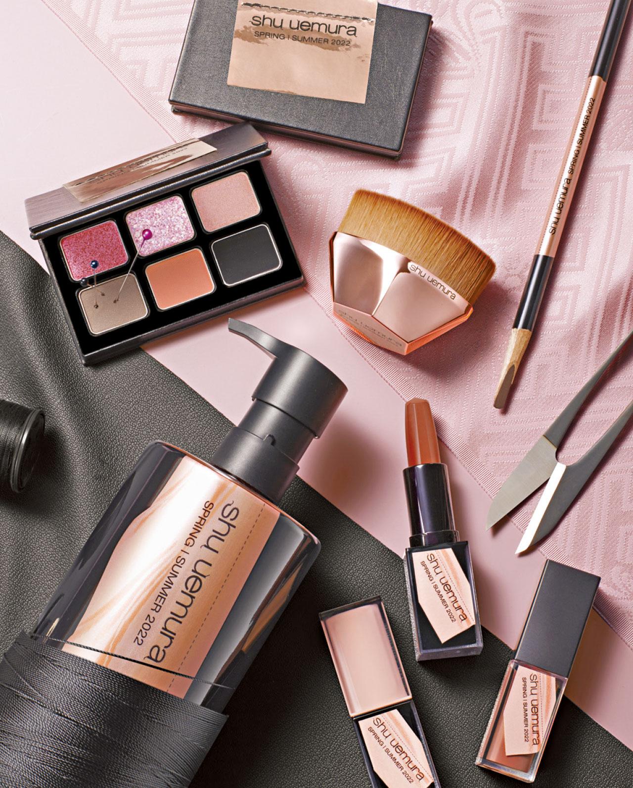 植村秀自1968年推出時尚彩妝「mode makeup」系列,發布逾126款創新彩妝創作。今年以「裸敢」為題,將精緻柔和的裸色系與大膽的煙熏色調結合,利用強烈與和諧對比色調,以及不同質感,塑造如高級訂製服的精緻妝容。