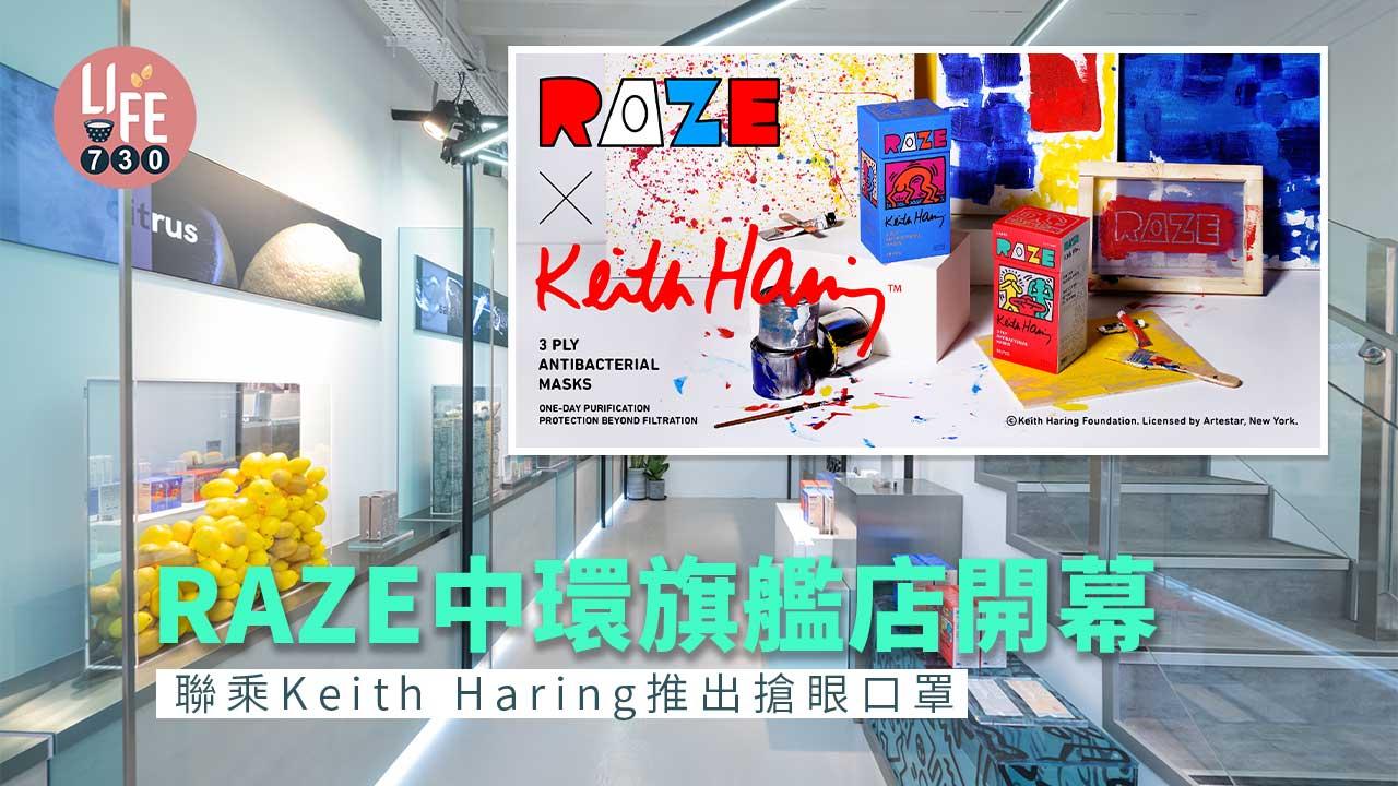 本地「納米光觸媒」科技公司RAZE,近日於中環閣麟街開設樓高3層的旗艦店,新店除了一系列新產品,包括搶眼的Keith Haring聯乘口罩,更有藝術展、打卡位,品牌更請來Dear Jane擔任一日店長,不同分店及網店亦購物優惠。