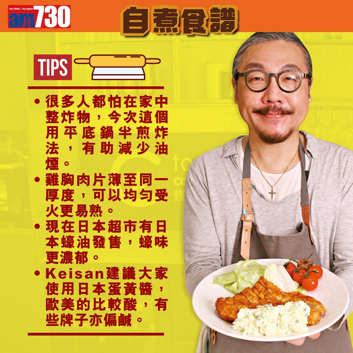 【今晚食乜餸】「チキン南蛮」南蠻雞,是居酒屋其中一樣最受歡迎的佐酒小食,原來自己都可以整到,但又怕搞到一屋油煙?來自北海道的日本人Keisan,今日就用流俐廣東話,教大家用半煎炸法整少油煙版本,一個平底鑊就可以完成,不過要留要點樣處理雞胸肉,仲有做出美味伴醬嘅方法!