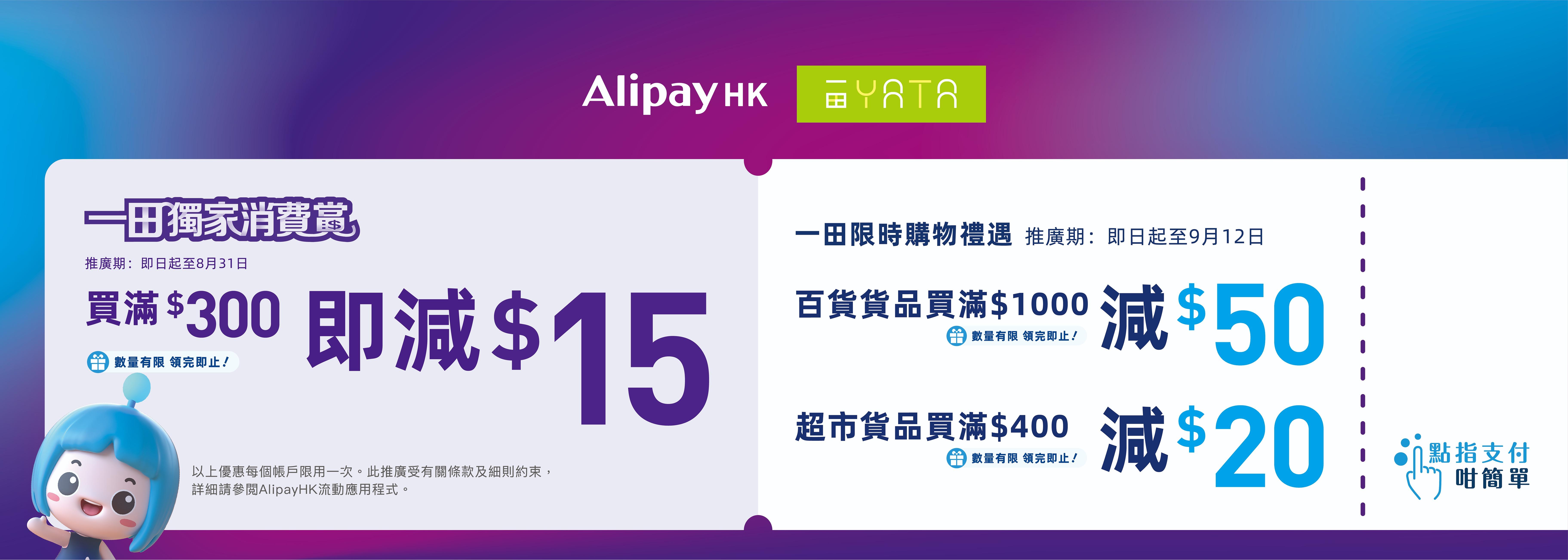 一田登陸AlipayHK 品牌Channel發放逾10萬張優惠券 每個帳戶最高可享$335優惠