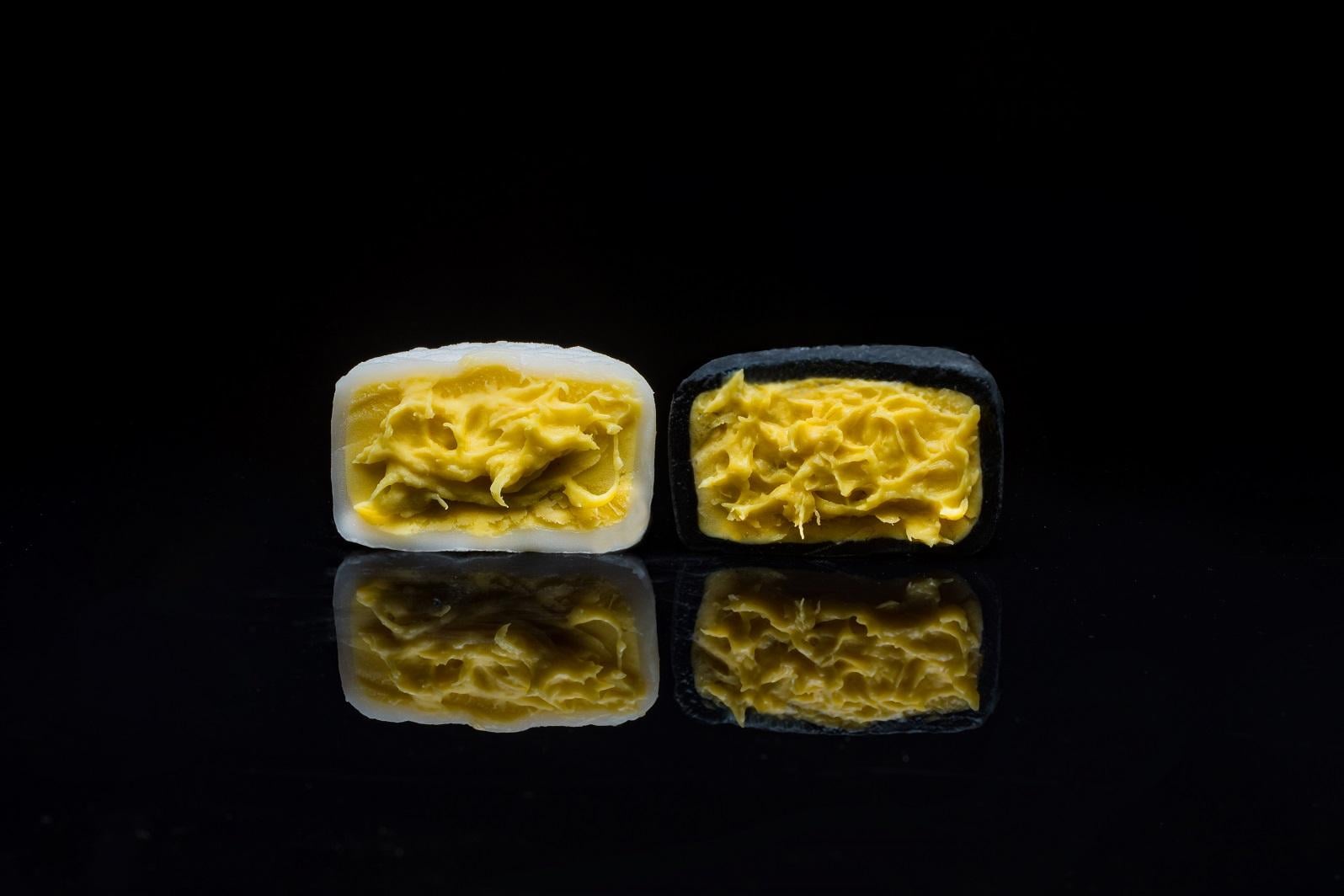 其實品嘗過馬來西亞榴槤的老饕,都會被那濃郁香醇且幼滑的美味所吸引,一試難忘。全因當地榴槤是天然樹上熟,充份吸收陽光和水分,從樹上掉下來才採收。兩款黑、白冰皮榴槤月餅,前者加入竹炭作冰皮,配上被譽為「榴槤皇者」的黑刺榴槤肉做餡,入口甜中帶回甘,味道層次分明,回韻變化多端;後者以透薄煙靭的冰皮,配上極品貓山王榴槤果肉,味道甘甜帶有酒香,入口即溶,味道層次豐富,無論黑與白,每一啖都能享受到醇厚的榴槤果香。