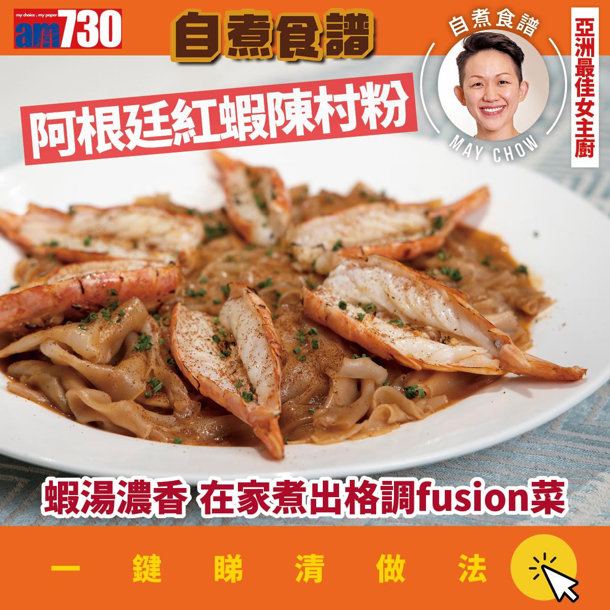 【今晚食乜餸】阿根廷紅蝦近年成為不少高級西餐廳的座上客,蝦肉呈天然橙紅色,蝦膏飽滿之餘更是鮮味無比,令人一試難忘。今次由「亞洲最佳女主廚」、餐廳Little Bao的主廚及老闆May Chow示範製作阿根廷紅蝦陳村粉,食材中西合壁,蝦湯濃香美味,在家也能輕易煮出格調Fusion菜!