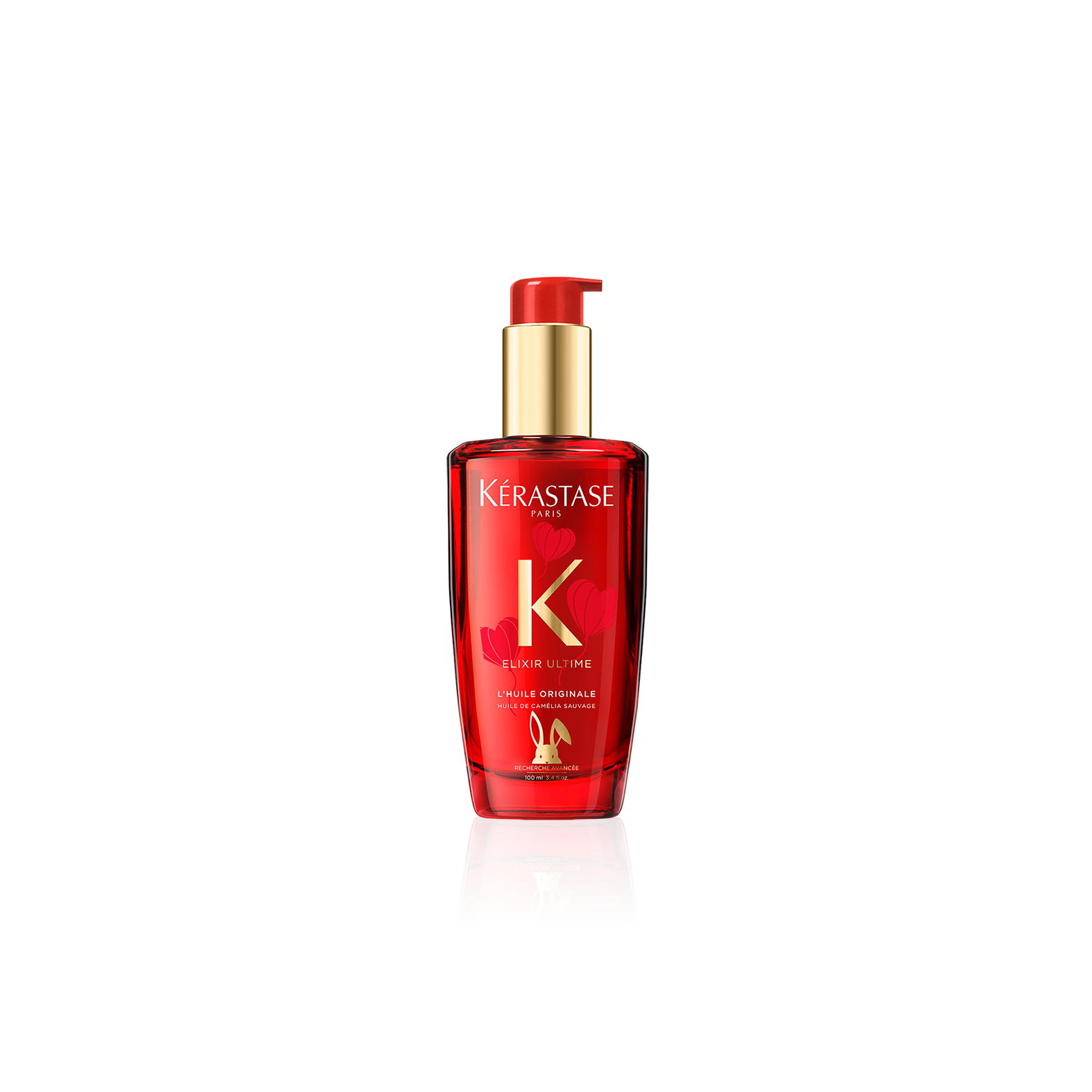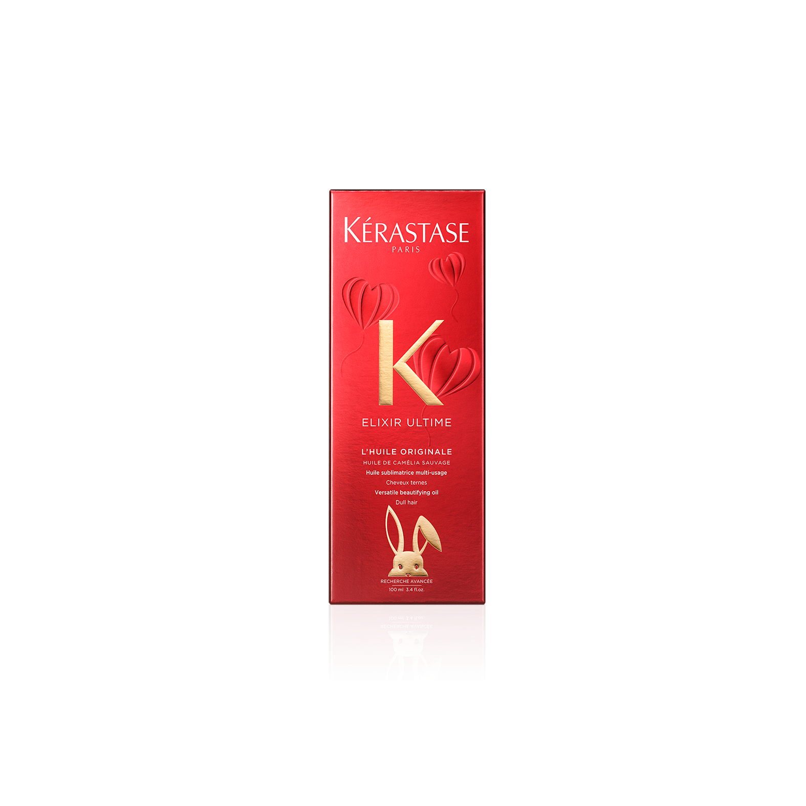 極緻全效修護精華是品牌的「神仙」金油,限量版設計加入金兔及紅色樽身設計,寓意容光煥「髮」。修護精華適合所有髮質,以珍貴的山茶花籽油製成,帶有含蓄芬芳。能滋潤並撫平毛燥髮絲,同時為秀髮提供高抗氧化保護,預防髮絲變黃、枯乾及折斷。