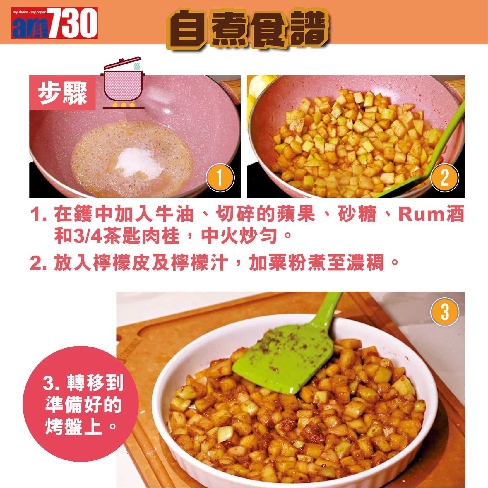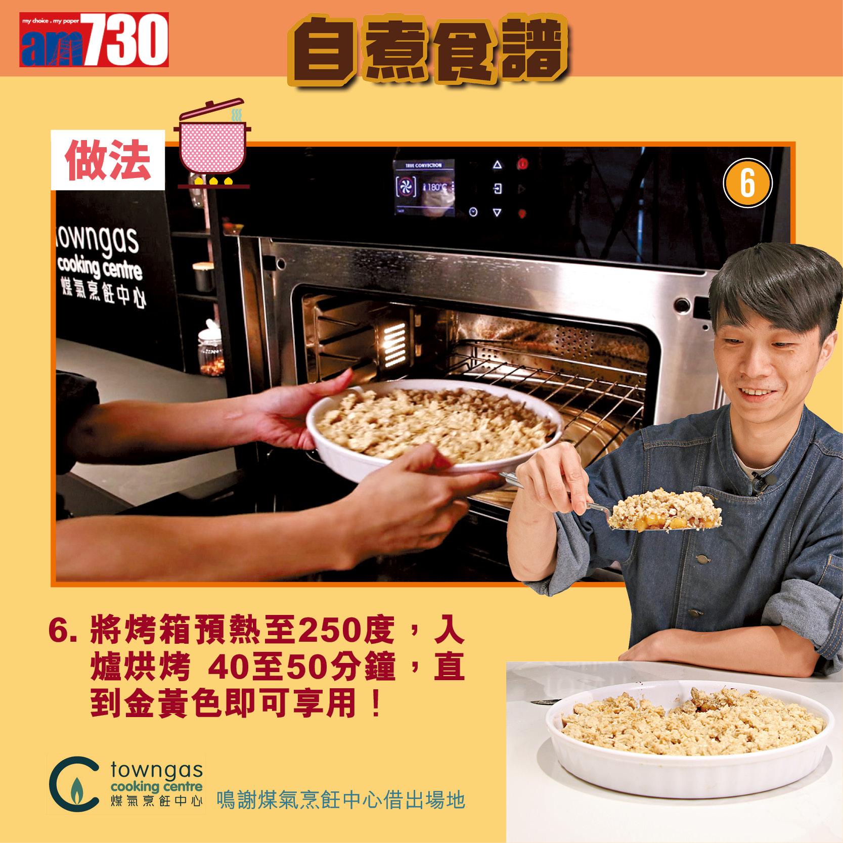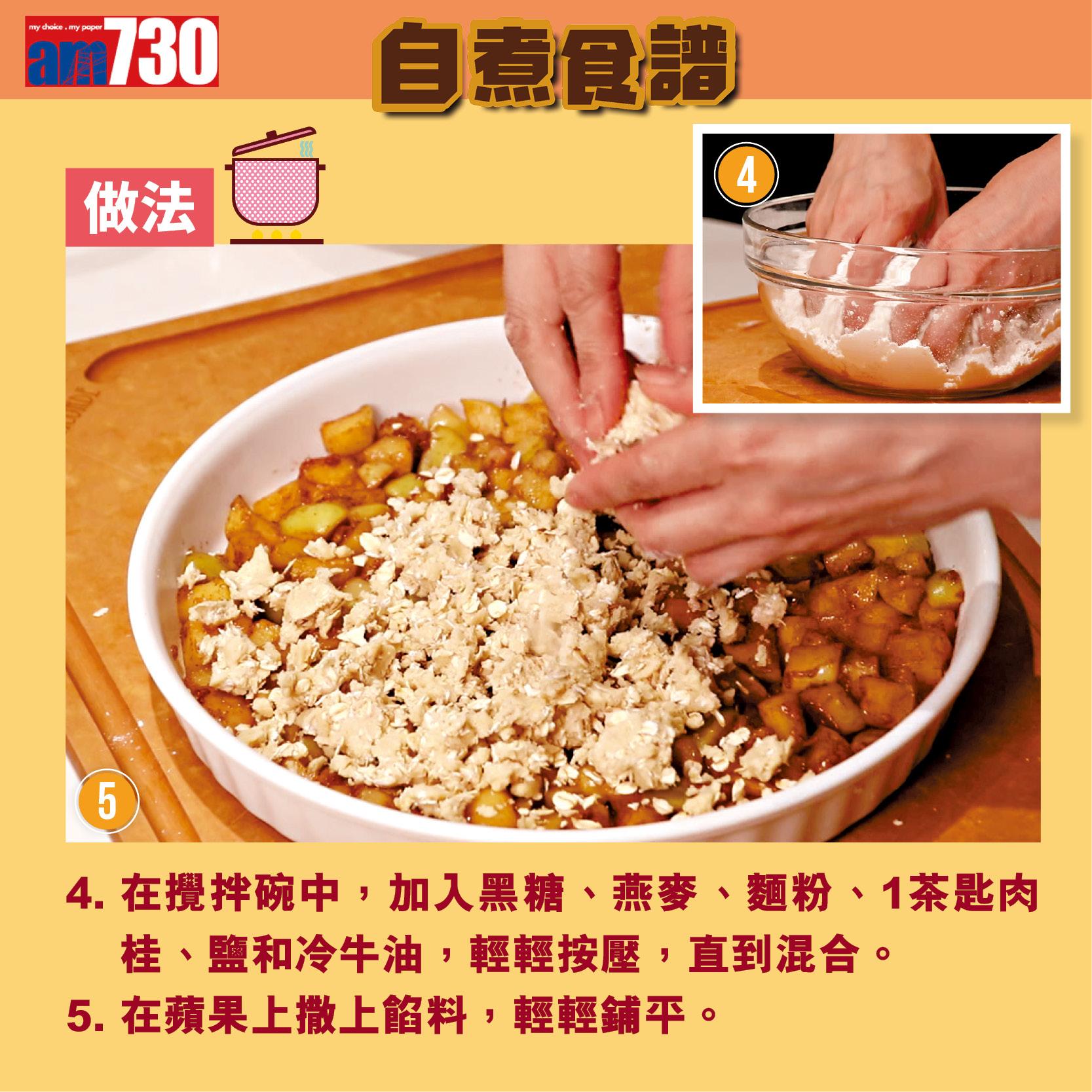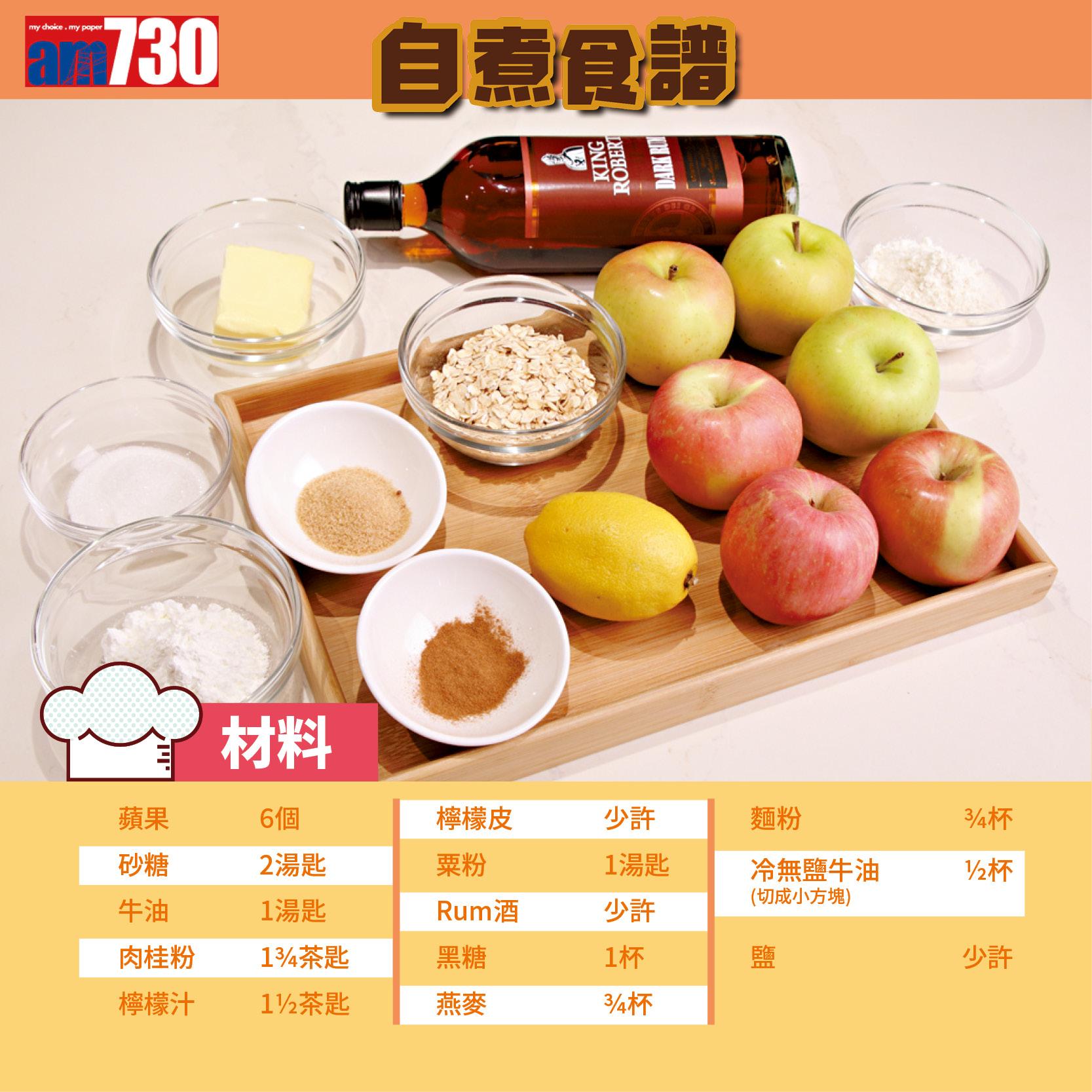 返回 生活 出版:2025-Mar-21 00:00 更新:2025-Mar-21 00:00 燕麥蘋果金寶食譜|健康版經典甜品 出爐陣陣肉桂香氣!(有片) 分享: 蘋果金寶一出爐就傳來陣陣的肉桂香氣,在冬日品嚐份外滋味。小凌今次特意在食譜中加入黑糖和燕麥,示範做出一個健康版本的蘋果金寶! 黑糖燕麥蘋果金寶材料 燕麥蘋果金寶材料包括6個蘋果,肉桂粉、Rum酒等(am730製圖) 黑糖燕麥蘋果金寶做法 鳴謝媒氣中心借出場地。 ADVERTISEMENT送BOC Pay+ X M&M'S 慶新年開運箱