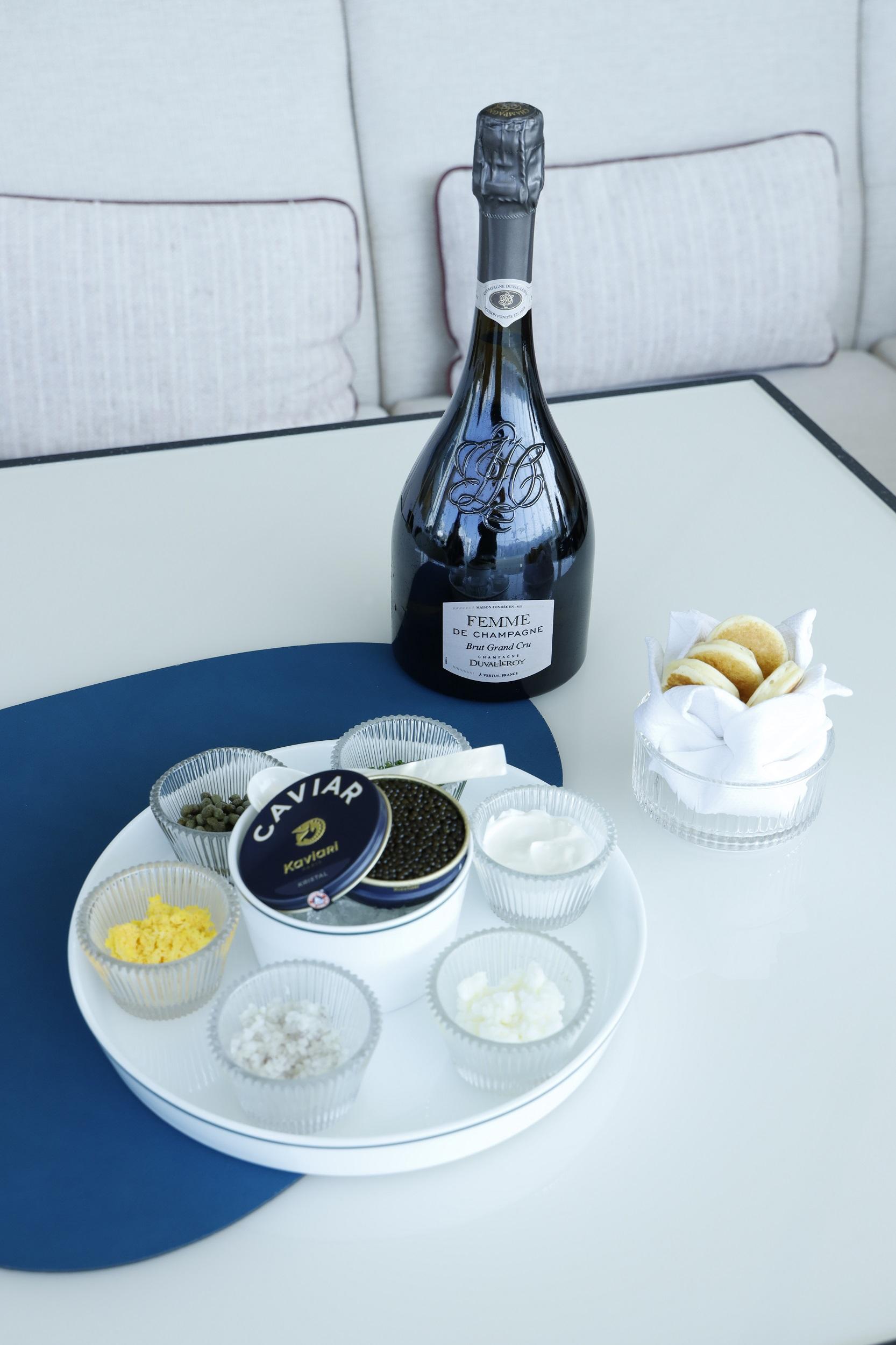 除了甜點出眾外,每位享用下午茶的客人都能點選飲品一杯,其中包括酒店與本地知名品牌The CoffeeAcademics聯乘的咖啡或精選茗茶,客人另可享用餐廳推介的無酒精香桃汽酒Sei Bellissimi Bellini或精品香檳NV Duval Leroy Femme de Champagne。二人份下午茶套餐每天下午供應。兩位用定價每套$888起。大堂酒廊除了紅白餐酒與各式飲品以外,翻新重開後的酒廊亦推介特選的香檳,款式繁多,其中不少亦是坊間少見的精品香檳,客人在下午茶或享用餐點的時後試試由經驗豐富的侍酒師推介的香檳配對,慢慢享受美酒佳餚帶來的細緻品味。