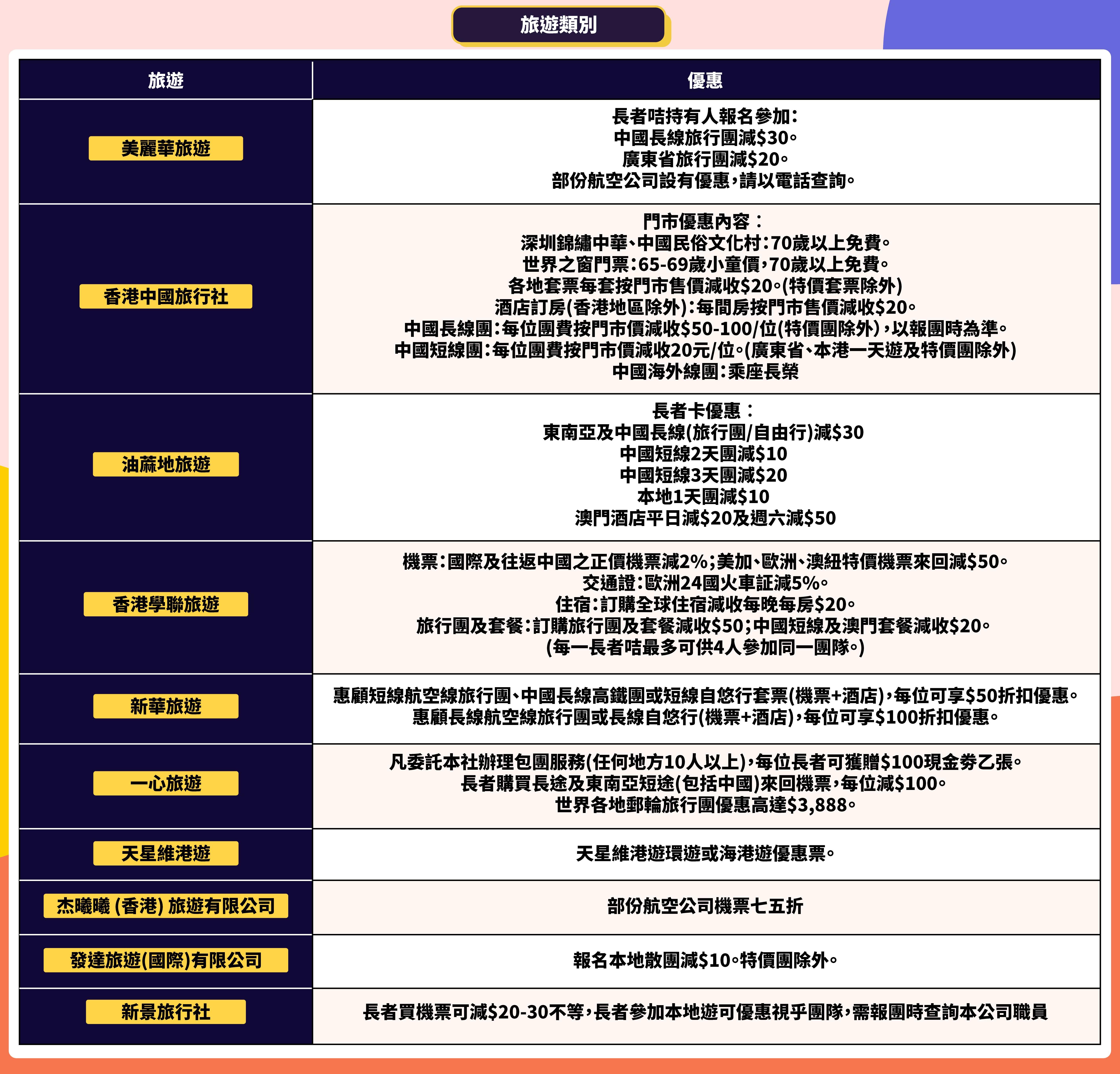 長者咭優惠2023丨一文睇清全港長者咭優惠 超市周三9折、$100入場迪士尼、中旅社新華旅遊最多減$100