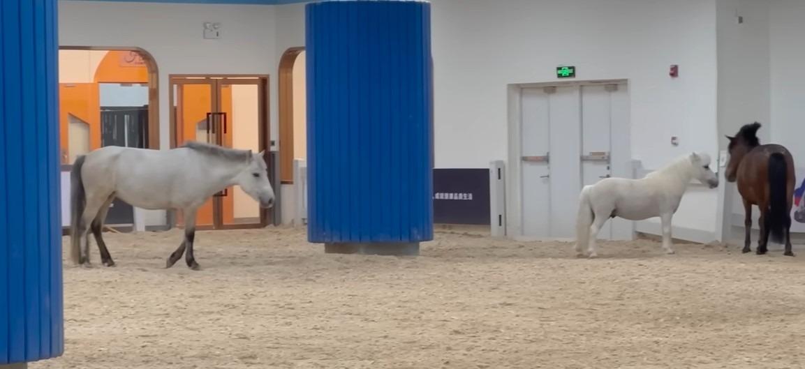 相比商場的室內馬術訓練場,這個名為「合馬馬術運動綜合體」的騎馬熱點,位於寶安區松崗、去年9月才落成的新商場「滿京華˙滿紛天地」的天台,是全國最大馬術場之一。「滿京華˙滿紛天地」是一個以大型「奧特萊斯(outlet)」為主題的商場,大量潮流購物及藝術裝飾,10樓的天台則設計為「也合馬馬術運動綜合體」,成為深圳獨有的天台騎馬樂園。「也合馬馬術運動綜合體」以德國FN馬術為教學體系,着重與馬匹的溝通。這個訓練場內有不同血統的馬匹,在職員帶領下可以先參觀馬廊內的馬匹,了解馬匹的生活習性,餵飼同樣也必不可少,小朋友可以先參觀,之後才開始學習騎馬。