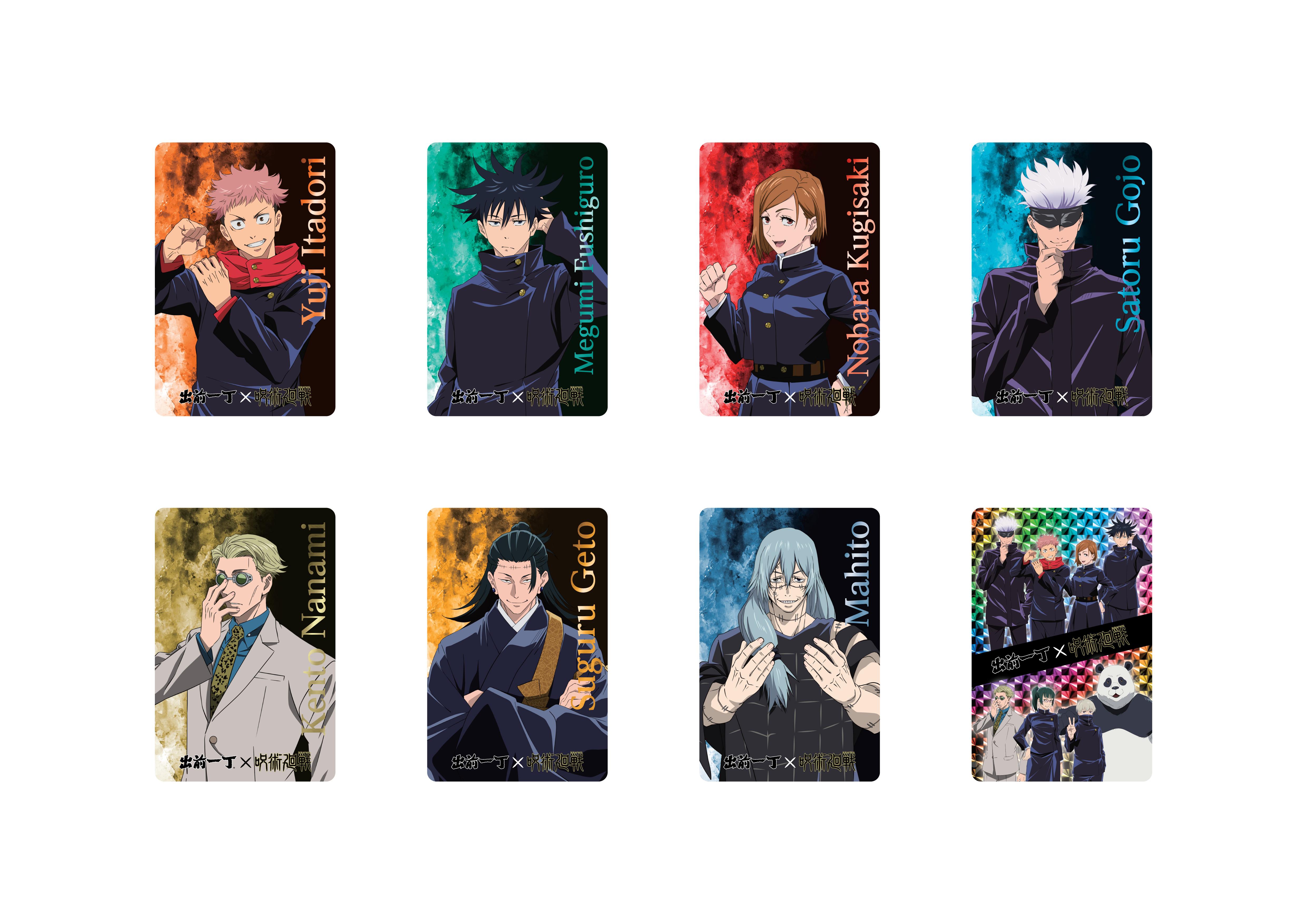 出前一丁聯乘《咒術迴戰》推出特別版5包裝即食麵共8 款口味,包括北海道小麥粉麻油味、豬骨湯味、黑蒜油豬骨湯味及麻辣鍋味,以及麻油味、九州濃湯豬骨湯味、雞蓉味及五香牛肉味5包裝即食麵。每款特別版產品包裝內均隨機附有「出前一丁×咒術迴戰」收藏卡1張,會員可透過「日清食品體驗館」WeChat小程式掃描收藏卡背面的二維碼賺取額外20分。