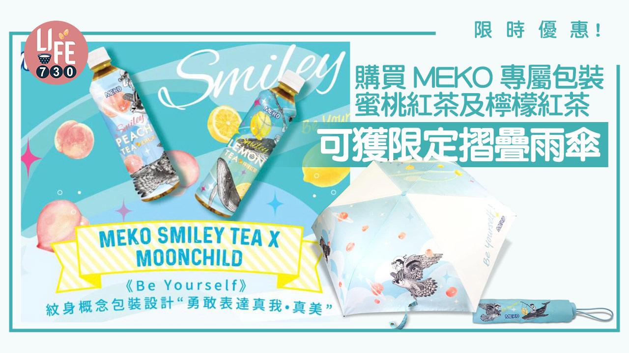1. 21/8起至27/8,Ztore 買1箱Meko Smiley Tea 果茶或任何MEKO產品滿$148送MEKO x MOONCHILD《Be Yourself》紋身概念摺疊雨傘1把