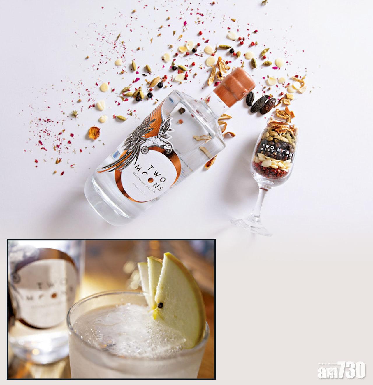 集辛香、柑橘香氣於一身的Two Moons dry gin加入湯力水,搭幾片青蘋果,鼻腔更添一重清新。