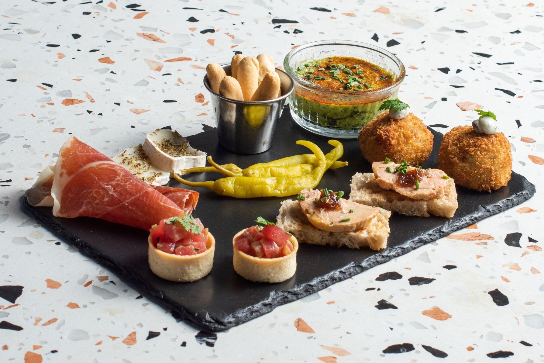 是次推出的全新餐單為各位帶來一系列滋味法國料理,精心製作多款開胃前菜及傳統法國鹹點與主菜。推介法國田螺配辣肉腸($145),主廚以傳統法國菜常用的普羅旺斯蕃茄醬汁作為 主調,加入辣肉腸、馬鈴薯及蘿蔔等配料,令帶有微微煙韌口感的法國田螺更加惹味可口。另外如果想和三五知己開心share,可以試試主廚拼盤 「法國南部篇」($215),主廚以 8款食品製作成主廚拼盤,當中包括:吞拿魚他他迷你撻、自製鴨肝醬多士、西班牙白毛豬火腿、法國聖馬羊山羊奶芝士配迷迭香、枝豆蘸醬、餅乾條、炸黑松露蘑菇球及醃辣椒,盡顯法國南部的餐點特色。