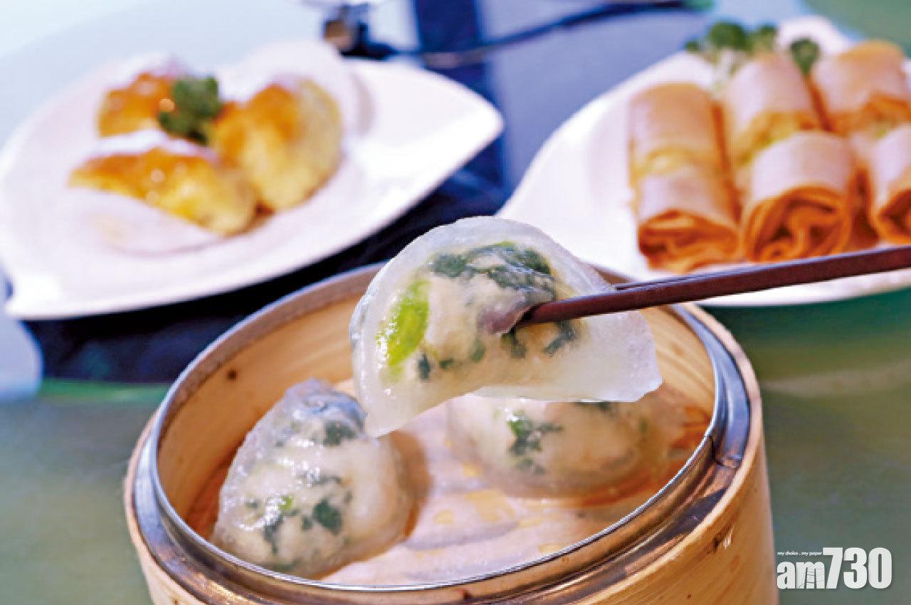 曾穫世界粵菜廚皇大賽點心銀獎的花竹蝦翡翠餃皮嫩餡靚,不定期限量供應。