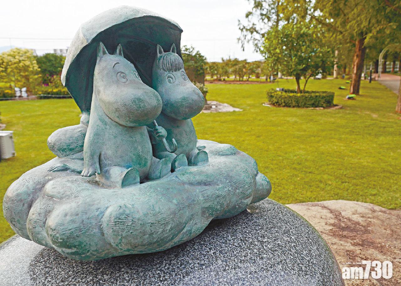「毛巾美術館」附設偌大的西式花園,園內置滿「姆明」家族的人物雕塑。