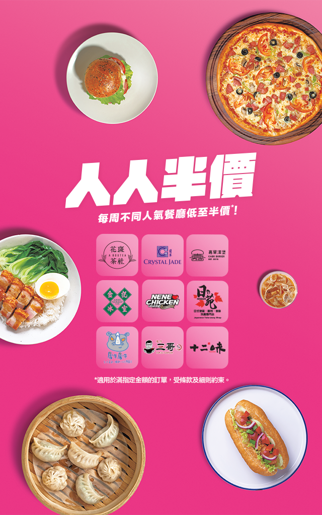 由即日至12月31日,foodpanda連續四個星期接連送上多重滋味驚喜,用戶專享低至半價嘅超值優惠,盡享多間人氣餐廳美食,首輪「人人半價」優惠的餐廳包括花斑茶社、翡翠飲食集團指定品牌#、嘉寶漢堡、金記冰室、NENE CHICKEN 、日之苑、犀牛犀牛、譚仔三哥及十二味,早午晚餐餐都任君選擇。foodpanda更預告,會於未來數星期陸續公布最新優惠詳情,記得留意官方每星期update!