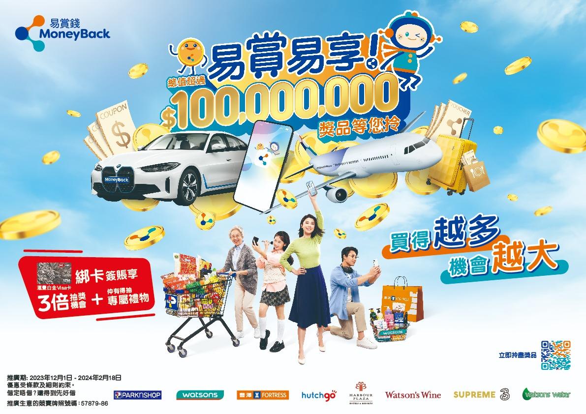 易賞錢MoneyBack由即日至2024年2月18日推出會員限定抽獎,共有5輪抽獎及一次終極大抽獎,會員有機會贏得總值超過1億獎品,包括一輛寶馬i4 eDrive35 SE電動車、日本東京商務雙人來回機票、戶戶送 Deliveroo $20,000 現金券等多項豪華獎品。