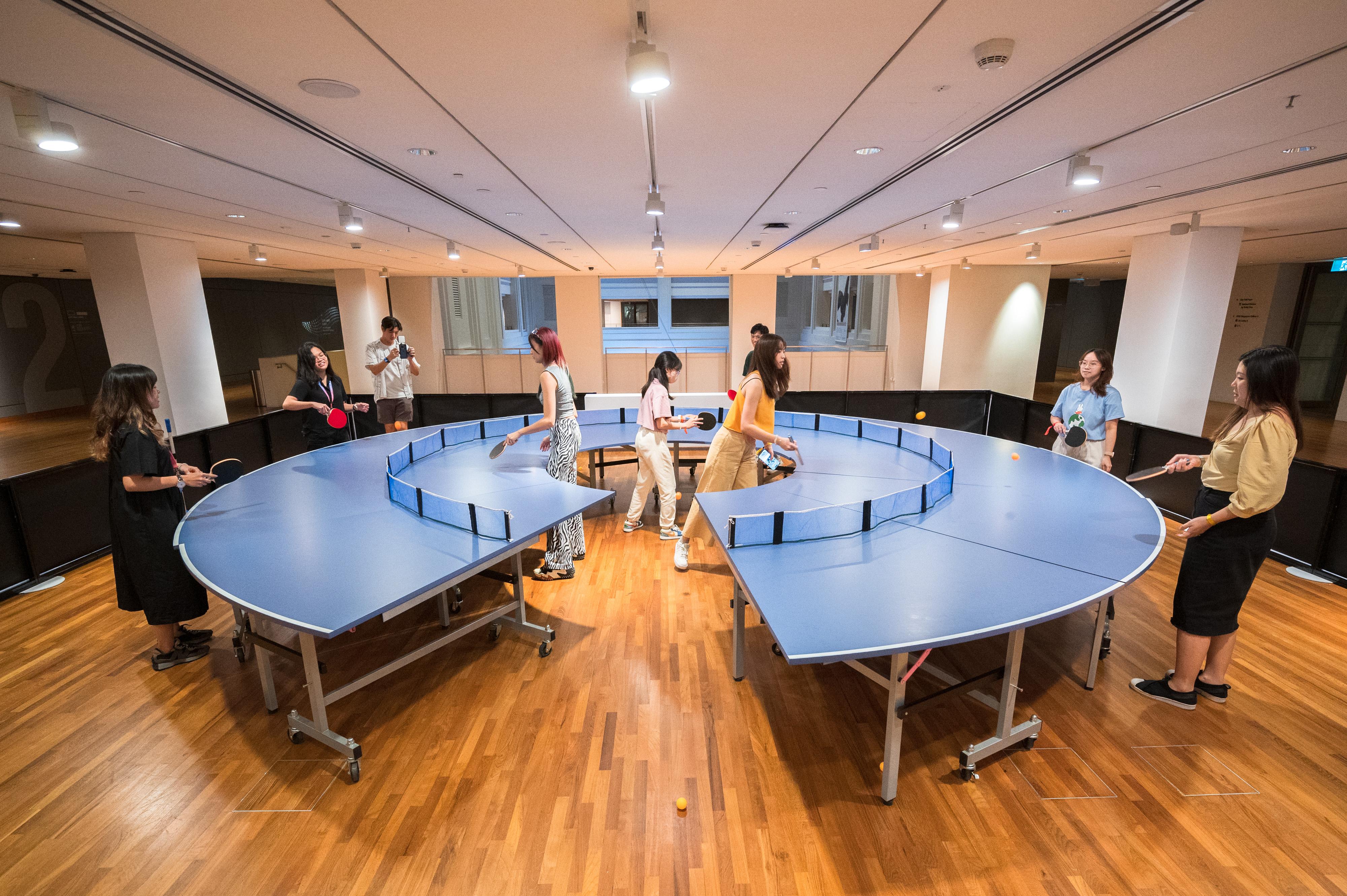 除了新加坡國家美術館外大放異彩,館內亦有不少創意作品,例如「Ping Pong Go-Round」就將乒乓球桌重新演繹,藝術家Lee Wen把長方形的乒乓球桌變成冬甩型狀,讓大眾可以走進藝術作品之中,拿起乒乓球板和作品互動,玩味十足。同樣好玩的還有「Wishful Thinking」,由藝術團體Whisperlodge 策劃,將近年在網絡間大熱的「ASMR」(自主感官經絡反應)帶到藝術館現場,在館內特別設置獨立空間,並將日常生活常見的聲效加強放大,為大家帶來一場難忘的感官之旅,現場可見不少人都玩得樂而忘返!