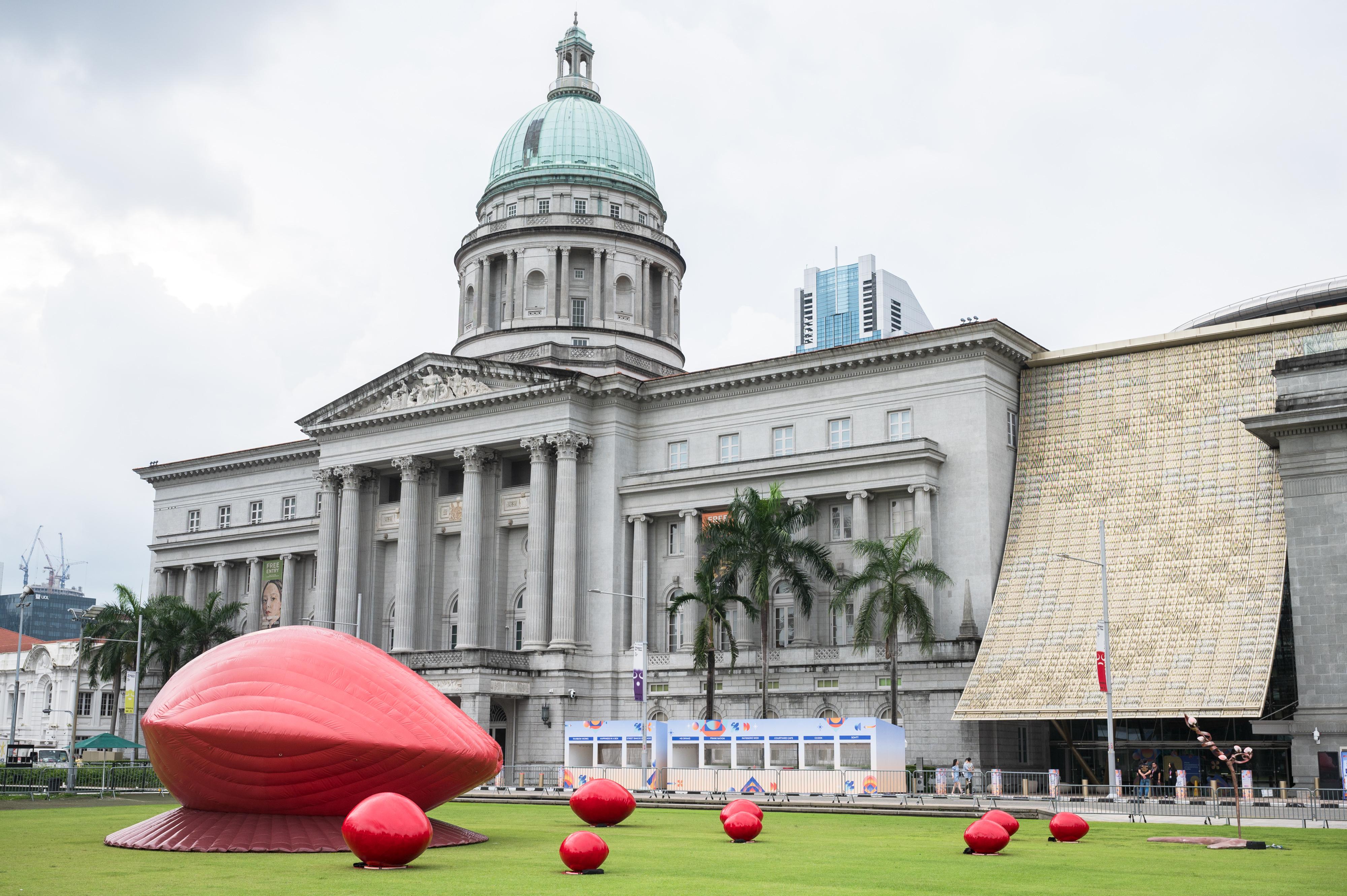 而在新加坡國家美術館對面的Padang Field草地,則有另一組藝術裝置作品「Wings of Change」,由新加坡藝術家Kumari Nahappan所創作,將她標誌性的相思豆作品巨大化,並散落在草地上,具有推動環保的意念。藝術家鼓勵大眾可在周邊順時針走動,從多角度觀賞作品之餘,更代表著活在當下以及積極改變的意思。