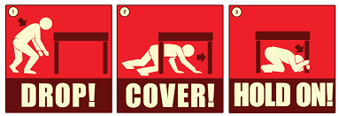 當地震發生時,我們用手保護頭部,並保持姿勢躲在堅固的結構下(網上圖片)