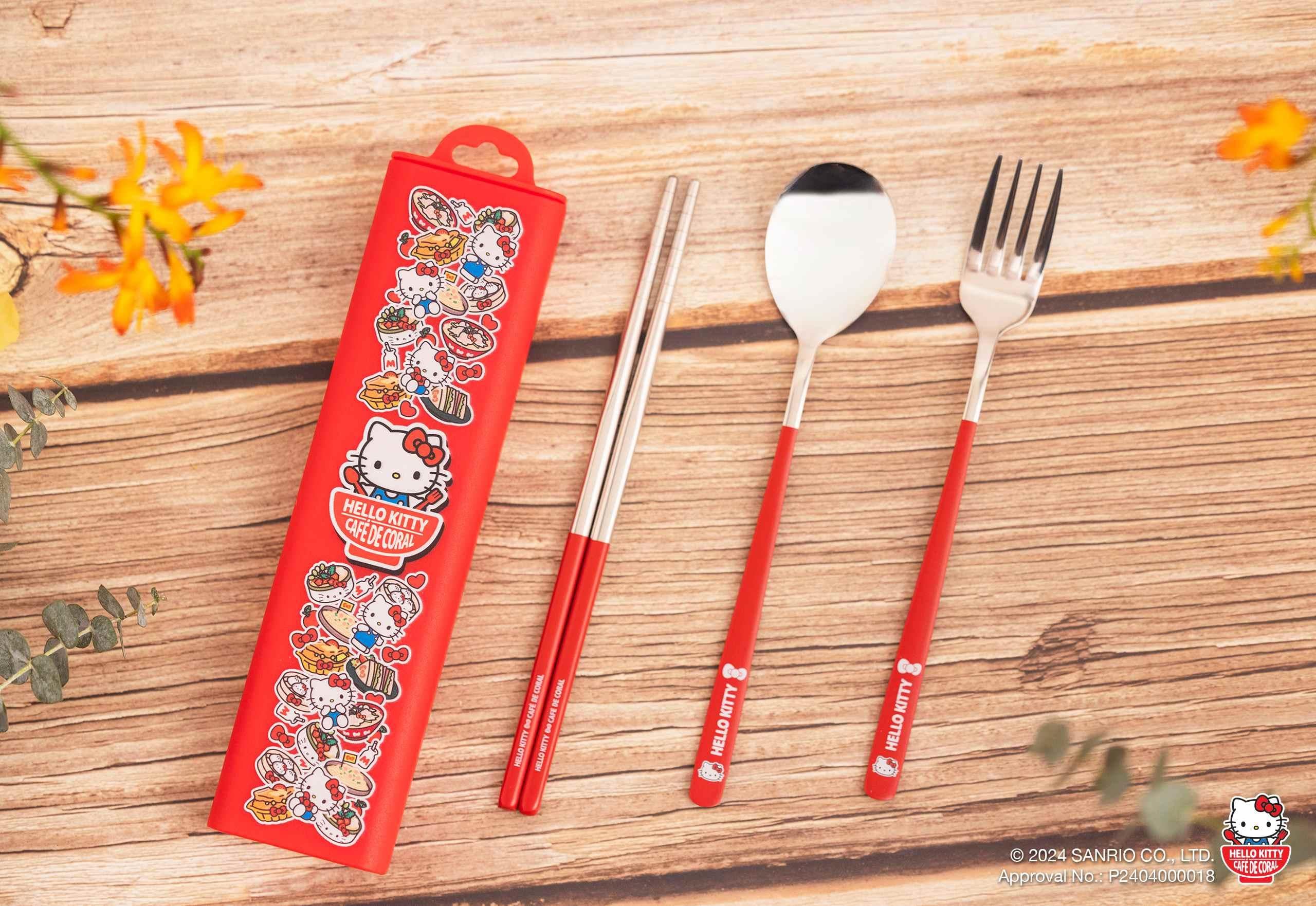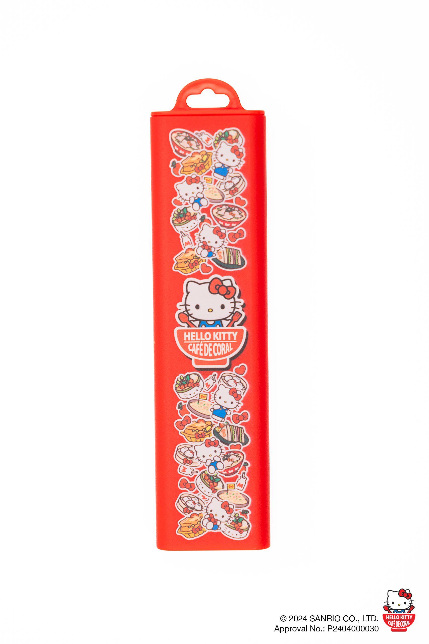 環保餐具以Hello Kitty 的經典紅色作主調,印上大家樂六大品牌的特色食品圖案,可愛趣緻又不失潮流玩味,女生們定必喜愛!餐具盒內盛載著印有Hello Kitty及可愛蝴蝶結圖案的不鏽鋼匙羹、叉子及筷子,美觀又實用;不論在哪裏用餐,都會貼心照顧熱愛中西美食的你!