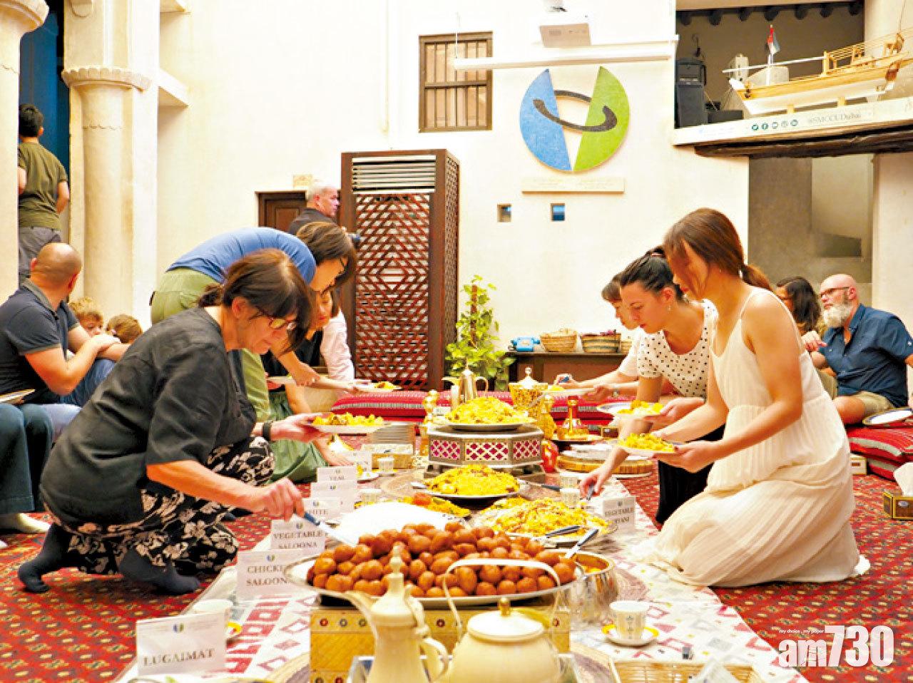 若果想一嘗正宗阿聯酋料理,推介到位於「阿法迪歷史區」(Al Fahidi Historical District)的「SMCCU」(穆罕默德酋長文化交流中心),除了舉辦古蹟導賞團,還有最受歡迎的「阿聯酋風味餐體驗」(Cultural Meals)。置身傳統風塔建築內,坐在阿拉伯手工地氈上品嘗,菜式有咖哩雞、咖哩牛肉、煮雜菜、炒米飯、沙律和甜品等,香料味濃都很開胃。