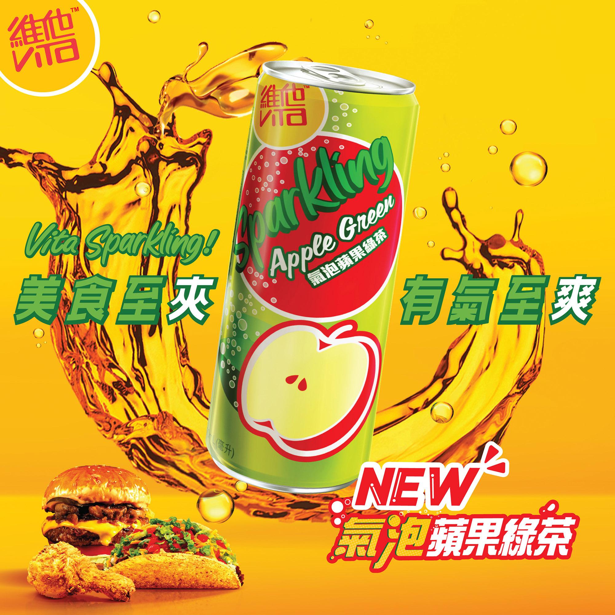 維他推出全新氣泡蘋果綠茶,清香綠茶配上多汁蘋果,帶來清新滋味!氣泡蘋果綠茶310毫升已即日起於 7-Eleven 及 OK 便利店上架,而6罐裝亦已於各大超市及HKTV Mall同步發售。