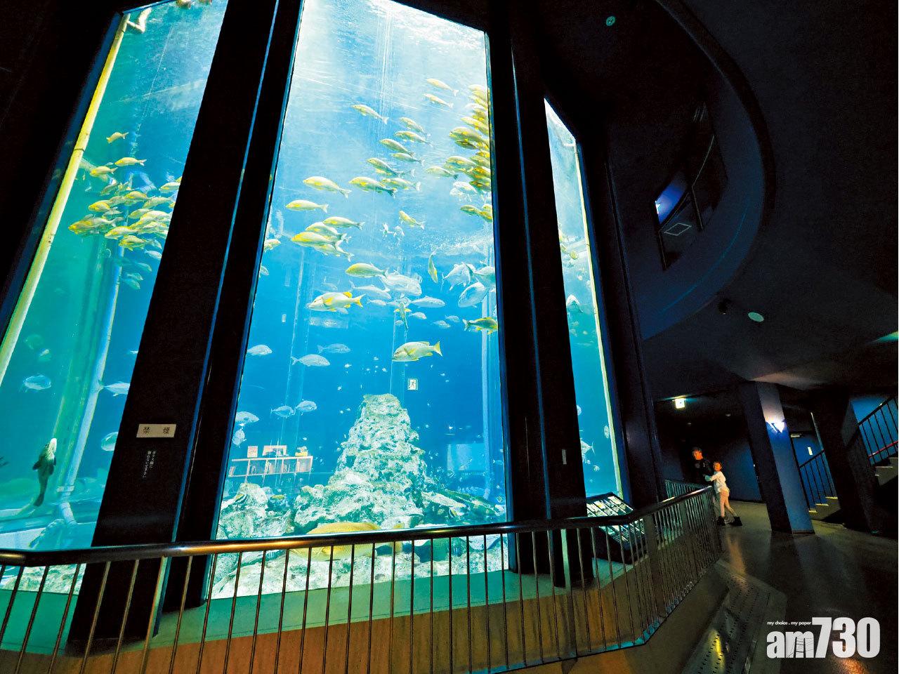 6公呎高的圓柱形大水槽,飼有50種珍貴魚類。