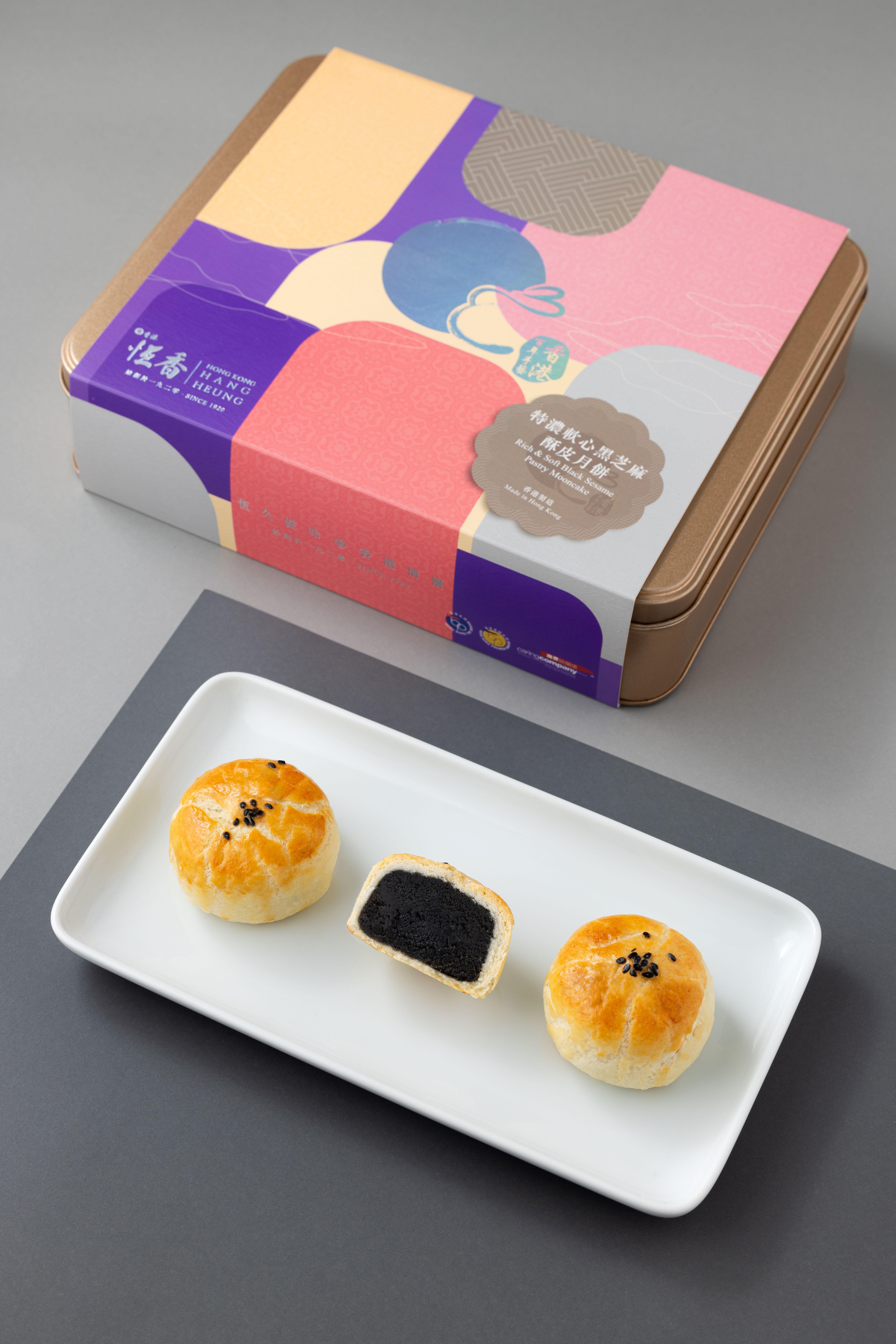 恆香老餅家的流心奶黃系列一向口碑好,今年品牌更推出新品「日式茗茶月餅」(售價$468,早鳥價$228),內含人氣「流心抹茶紅豆月餅」及新口味「焙茶麻糬月餅」,以日式麻糬與焙茶粉製作,茶味香濃,麻糬煙韌,入口層次豐富。而以皇牌老婆餅酥皮作主打酥小月系列同樣有新口味登場,「蛋黃鳳梨酥皮月餅」(售價$248,早鳥價$178)以酸甜的鳳梨肉配上粒粒鹹香蛋黃碎;「特濃軟心黑芝麻酥皮月餅」(售價$248,早鳥價$178)則選用上品黑芝麻製成,味道醇厚。