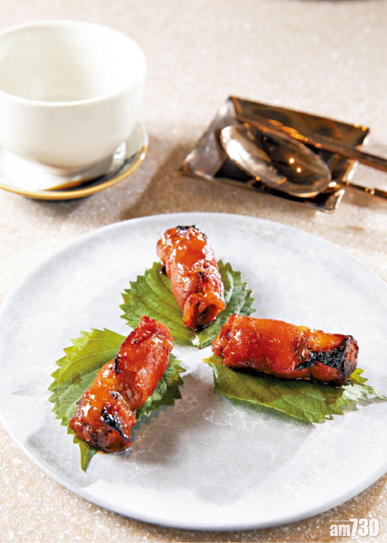 鵝肝金錢雞,在傳統金錢雞加入鵝肝,聽落都有點膩,但師傅巧妙地利用紫蘇葉的香氣扭轉局面。$88/3