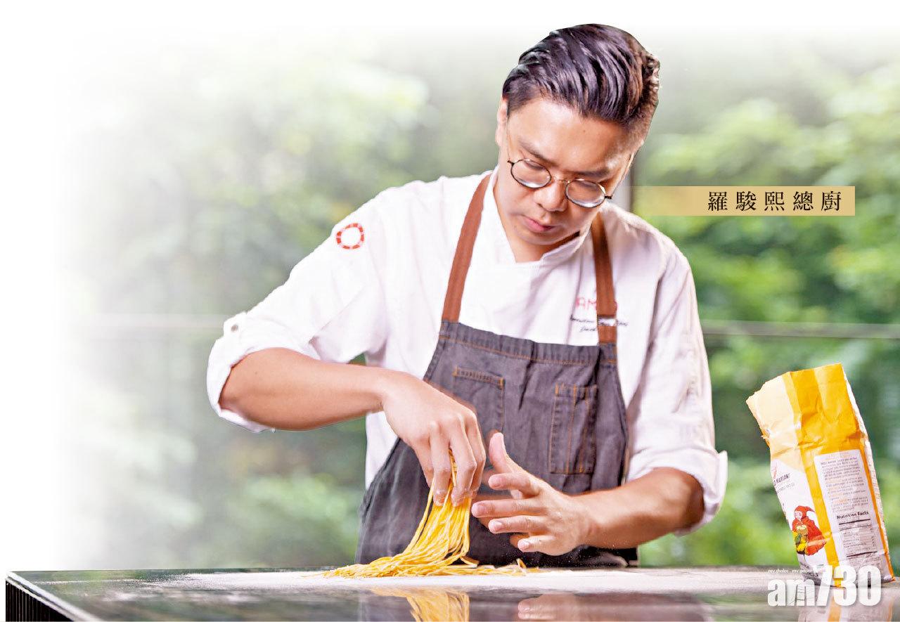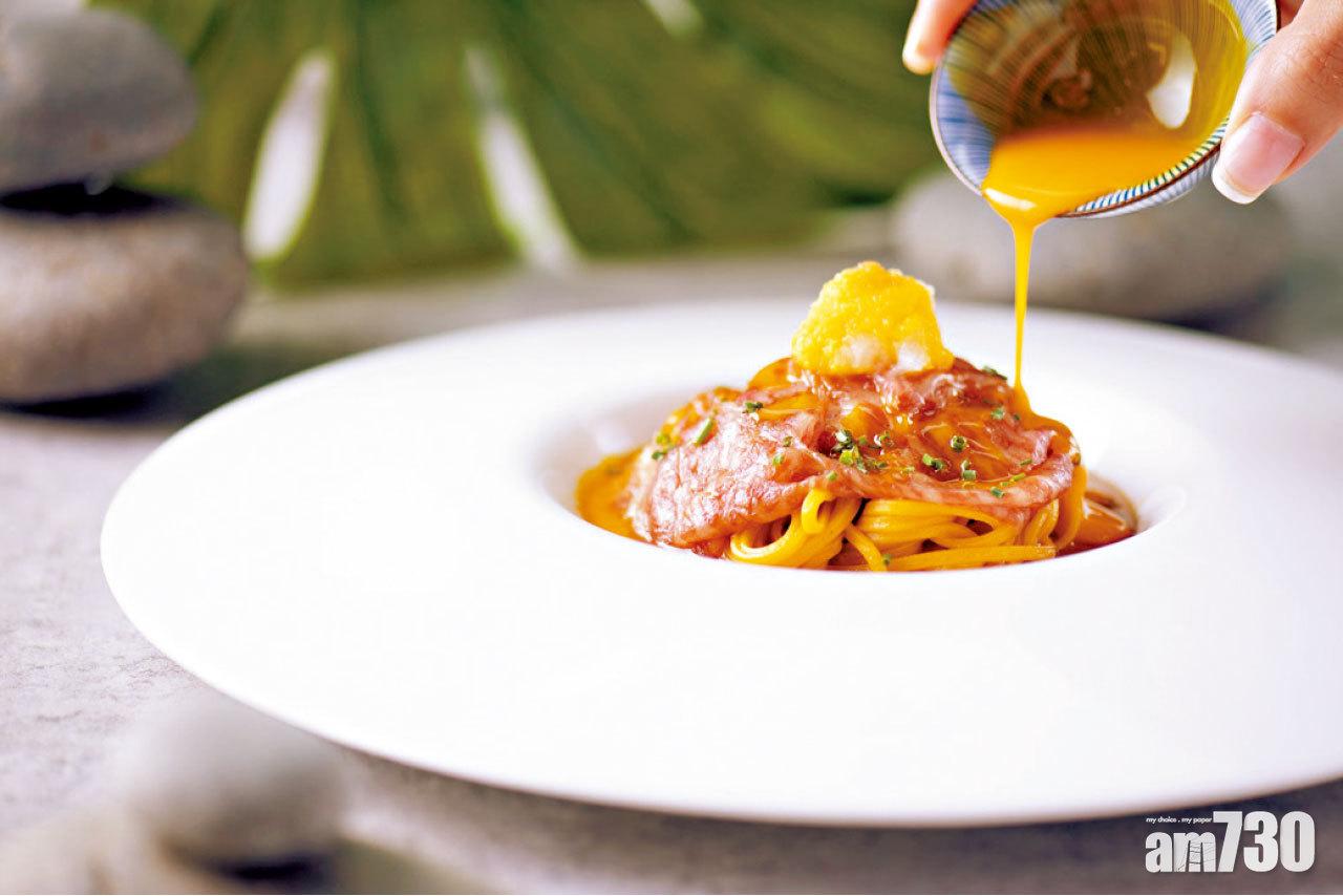 拿手於意菜設計的羅駿熙總廚,以日菜精髓為靈感,呈獻六道嘗味餐目(Tasting Menu),將分量小而精巧的日菜理念與意菜烹調手法融會貫通,少不了其最擅長的手製意粉。主菜A5和牛壽喜燒寬條麵配低溫慢煮意大利蛋黃令人一試難忘,另有前菜紅蝦他他配高湯啫喱及紫蘇意大利餃子配蔬菜清湯等。