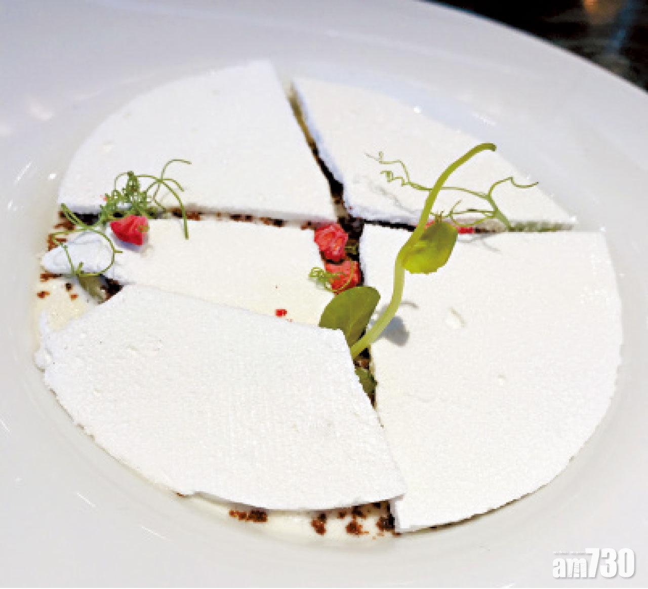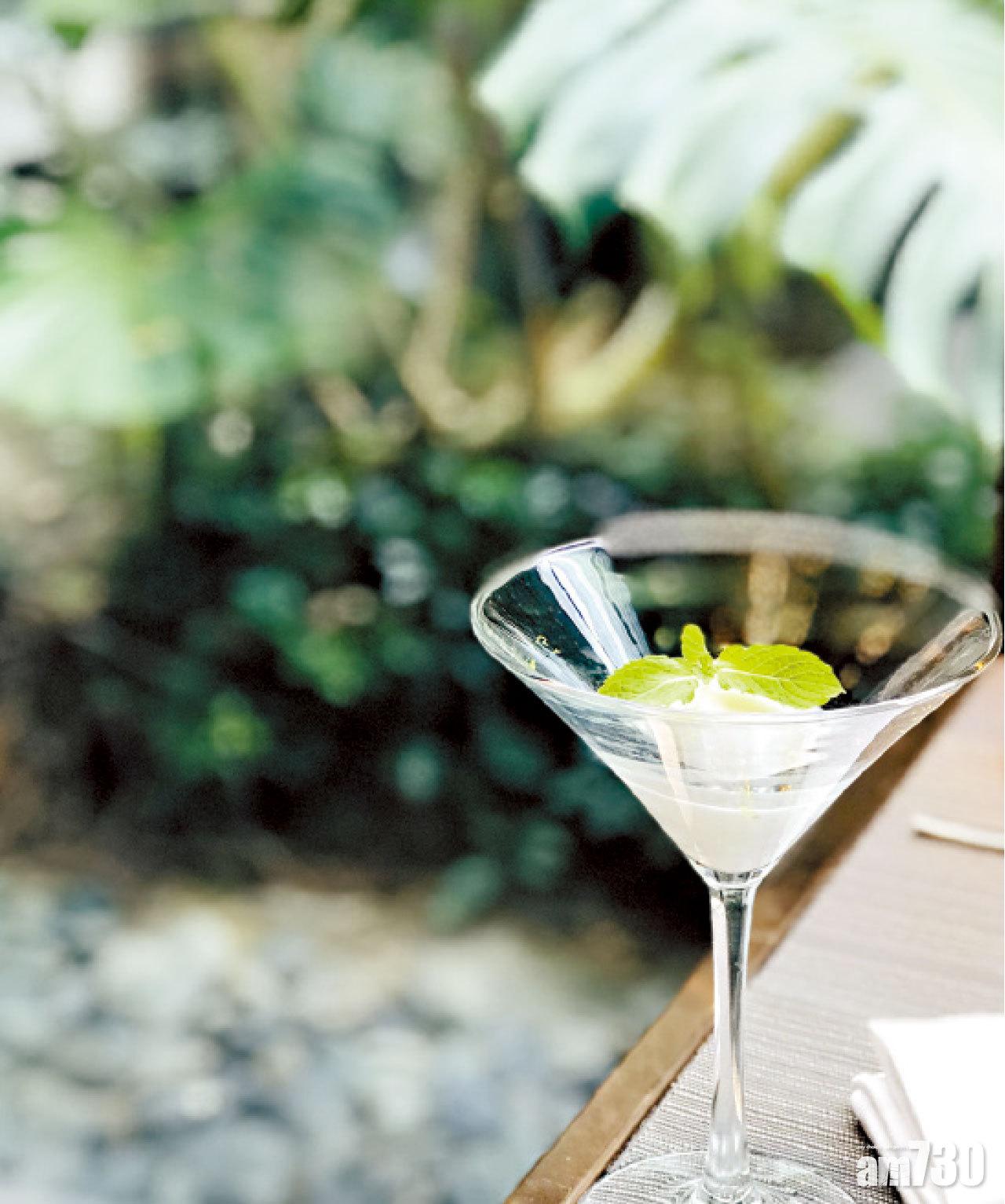 非常有意境的甜品──「生機盎然」 配白提啫喱,以小草絕處逢生為靈感,法式蛋白糖霜脆「石牆」下是青提、提子汁啫喱及雪糕,並以朱古力碎化作泥土,更見可愛小苗探頭而出。